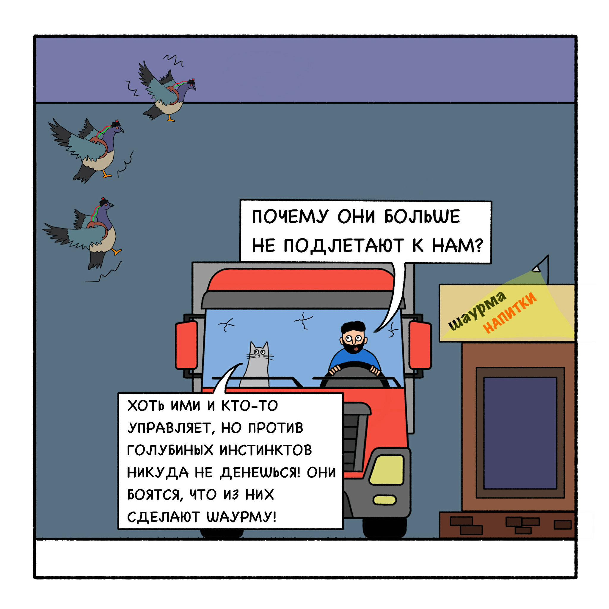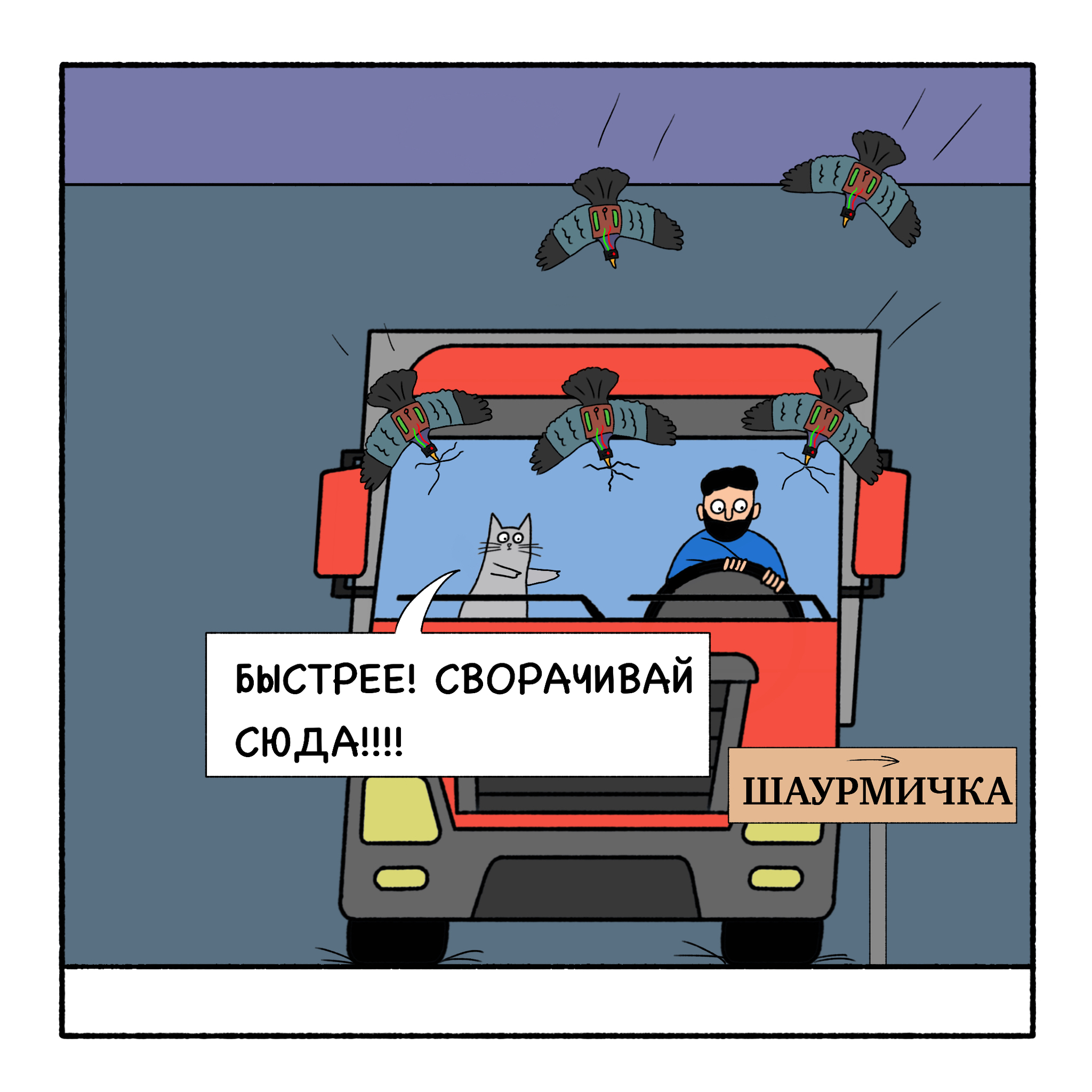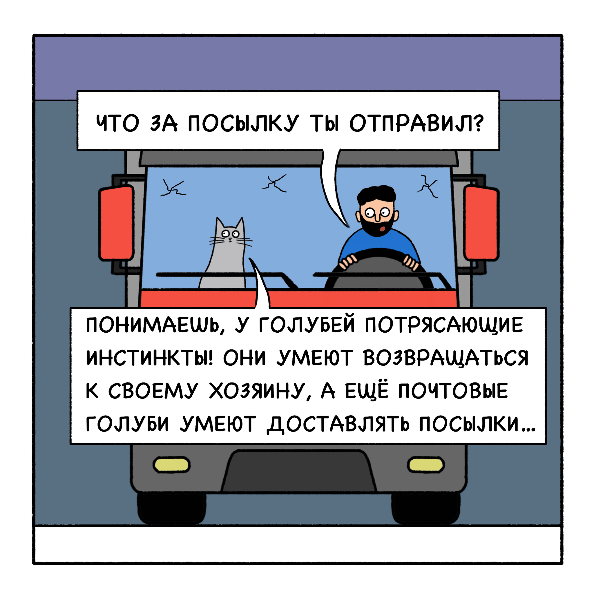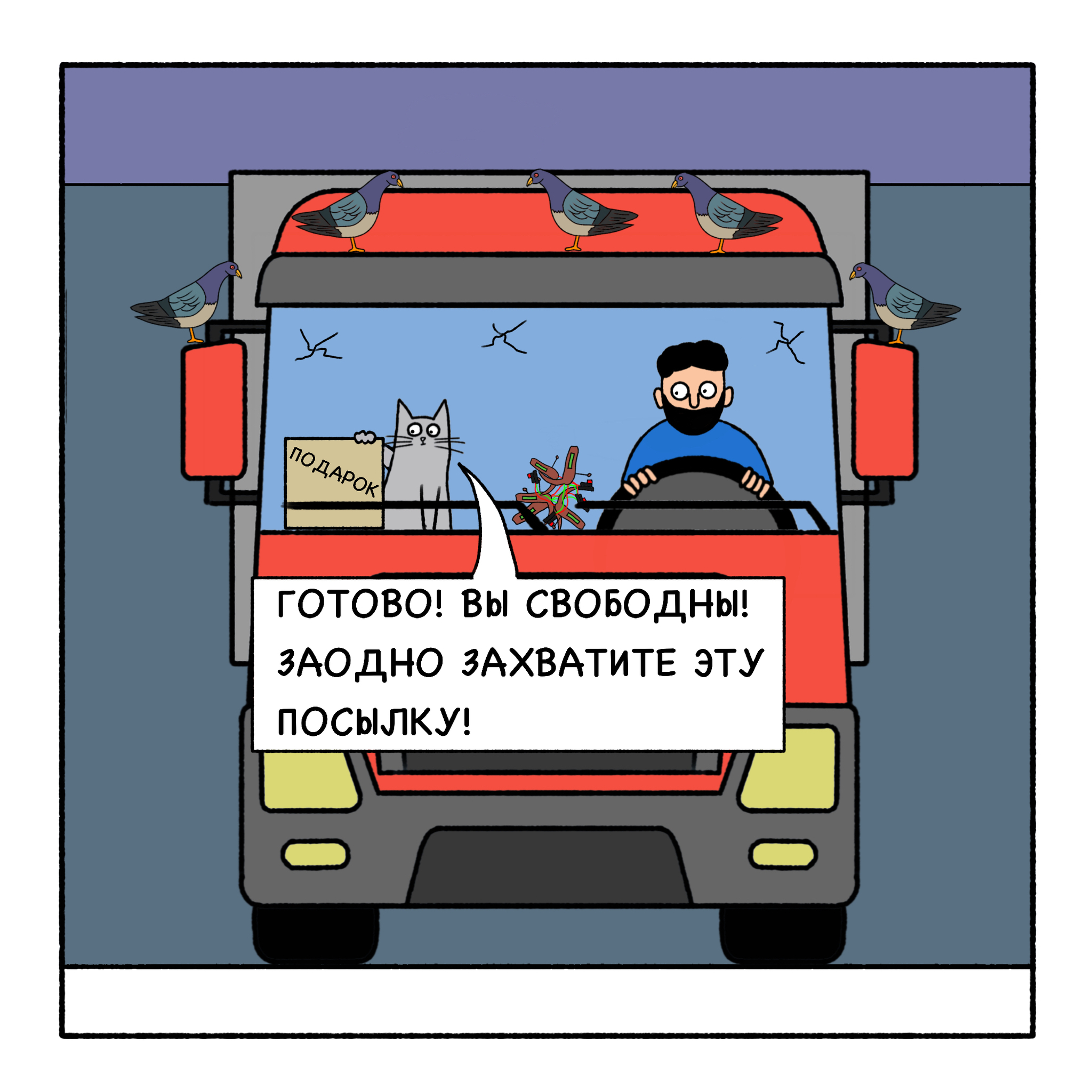 Кот Вулкан и дальнобой едут далеко-далеко. В дороге дальнобоя развлекает очень эрудированный и умный кот Вулкан.