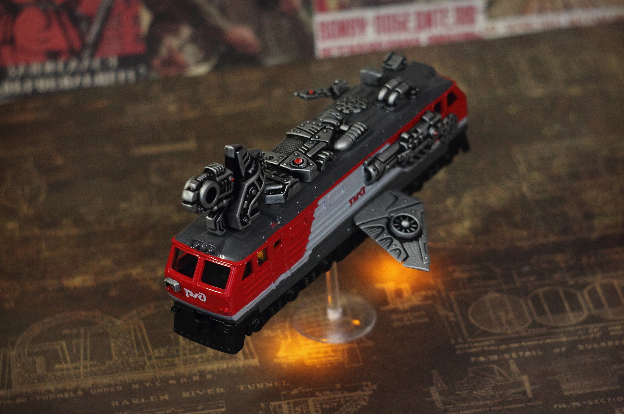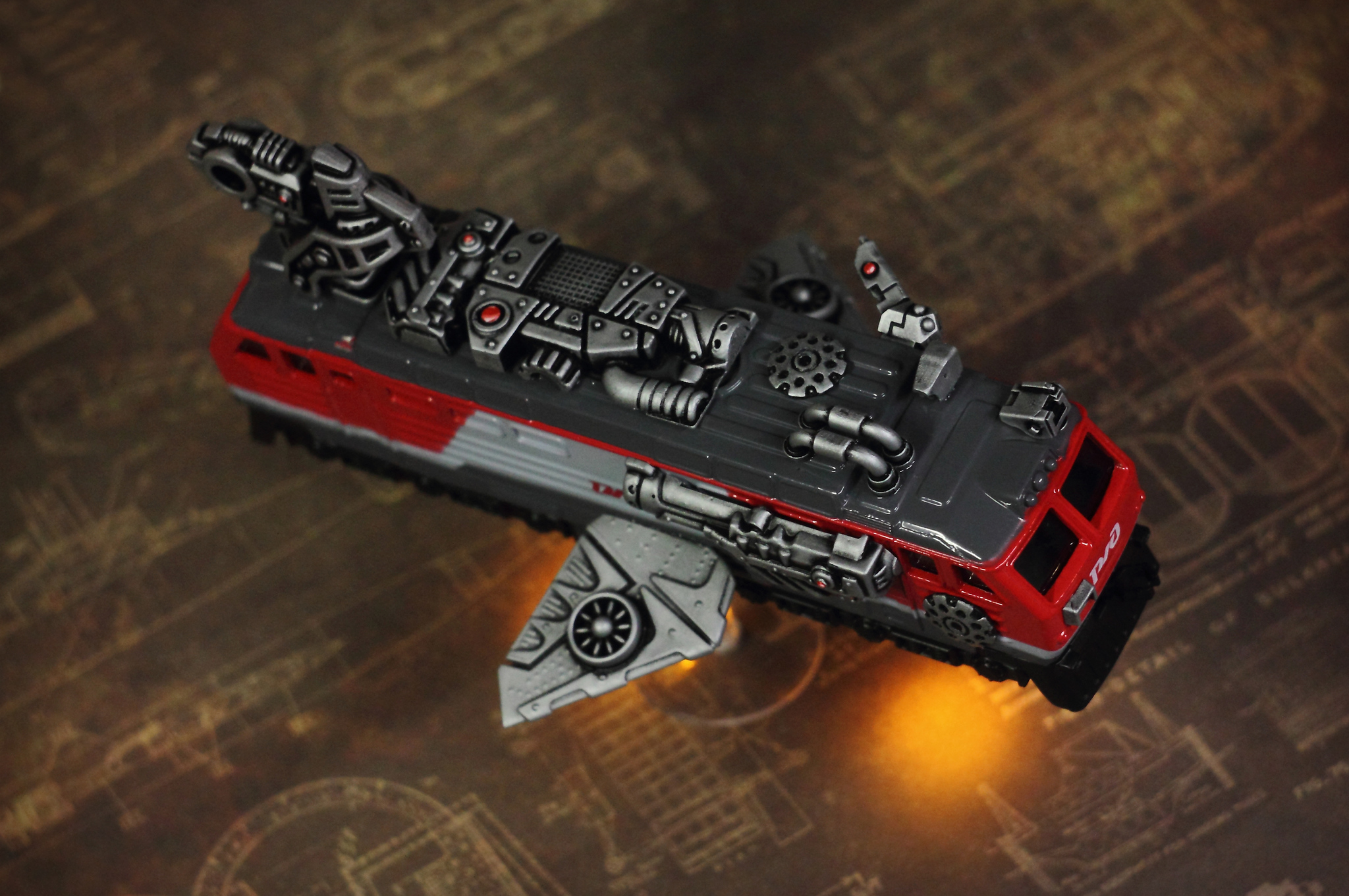 Использовал, собственно, металлическую игрушку из "Детского мира", россыпь деталей от всяческого моделизма, грунт/акрил/лак/эпоксидку.
