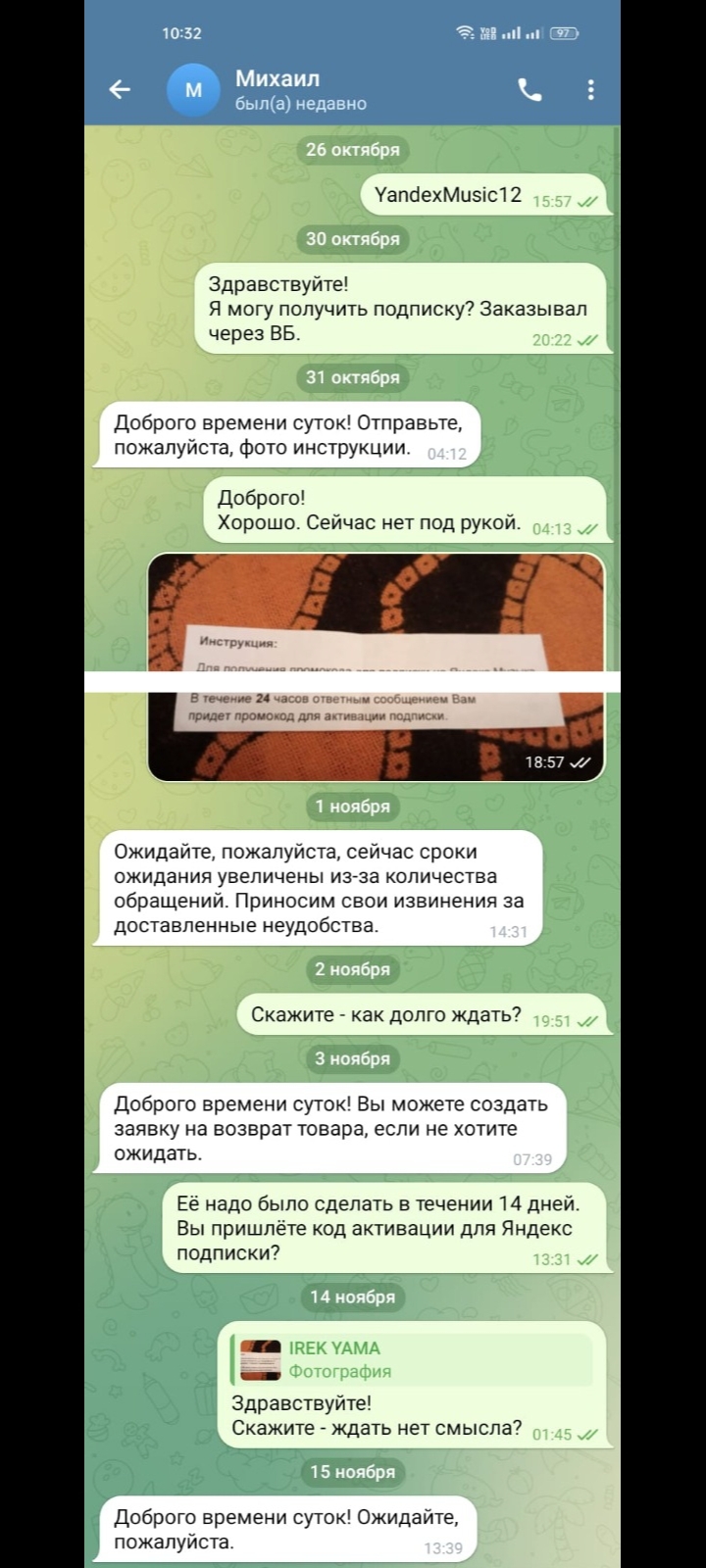 Заказал я (пару месяцев назад уж) Яндекс-подписку с хорошей скидкой на WildBerries.