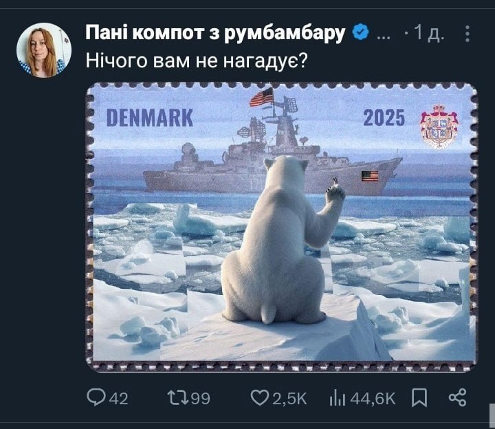 116 Ignatbrat Киевские фотошоперные войска 8 месяцев назад Ничего вам не напоминает? Политика Скриншот X (Twitter) Дичь Украина Фотошоп мастер Украинцы Дания Бред Гренландия 9 Ещё 0