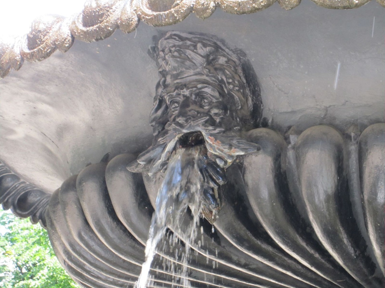 По бокам фонтана есть страшные рожи, изрыгающие воду. Вредный бригадир на заводе так извел рабочих своим ором, что они слегка подправили эскиз и увековечили своего не в меру горластого начальника .