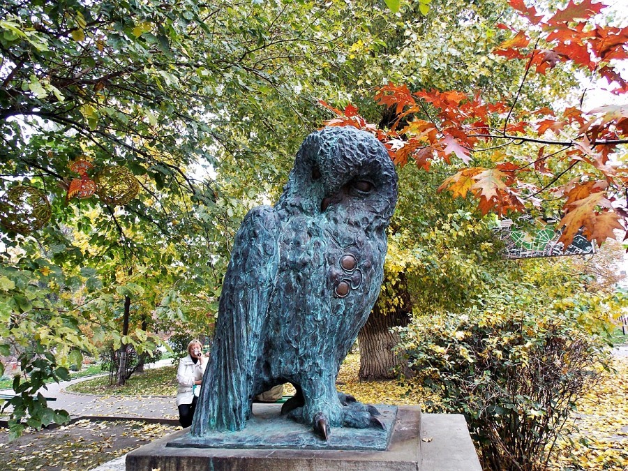 Вышли к Скверу Интеллигентов. Каждая птица-скульптура символизирует какую-то черту интеллигенции. Мудрость, осторожность, бунтарство...