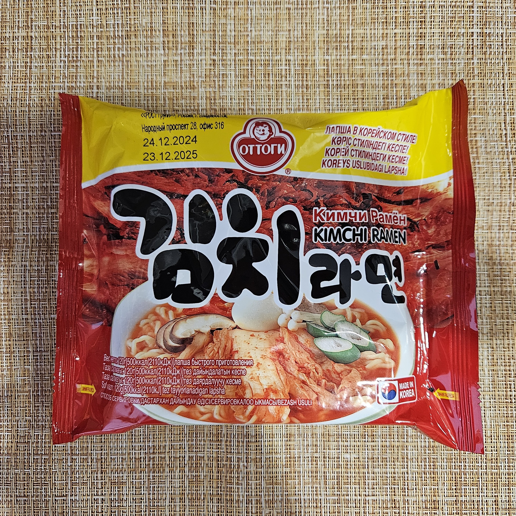 Доброго времени суток, дорогие друзья! После всей экзотики последних нескольких недель захотелось чего-то простого. И тут, как нельзя кстати, подвернулся мне в местном Фикс-прайсе кимчи рамён от Оттоги за 105₽. Ну, конечно же, цена огонь. Поэтому берём и пробуем. Для ЛЛ: вполне вкусно, большая порция и адекватная цена. Большая мягкая упаковка с преобладанием красного цвета. Имеется информация на русском языке и языках ближнего зарубежья. В общем, что тут описывать? Все и так всё знают. Поэтому пару фоток и погнали.