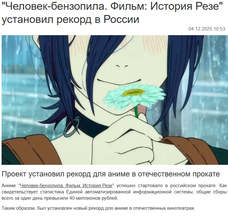 Ну и? Это же первый день, четверг 4 декабря. А какие там общие сборы, когда 6 декабря со всех утюгов сообщили, что в цифре аниме выходит 9 декабря.