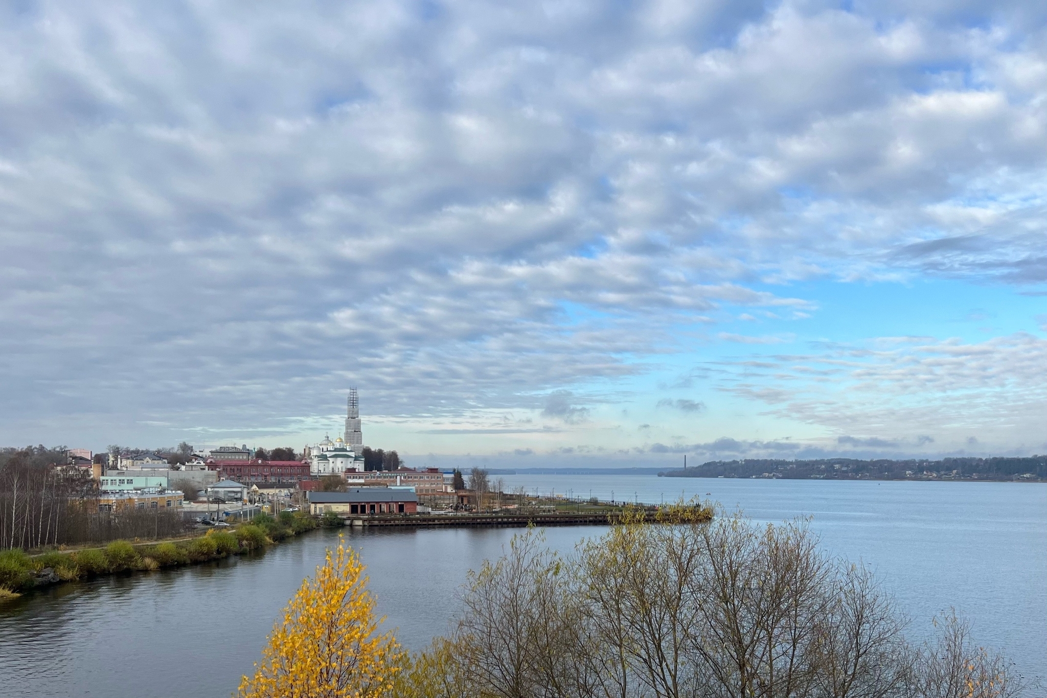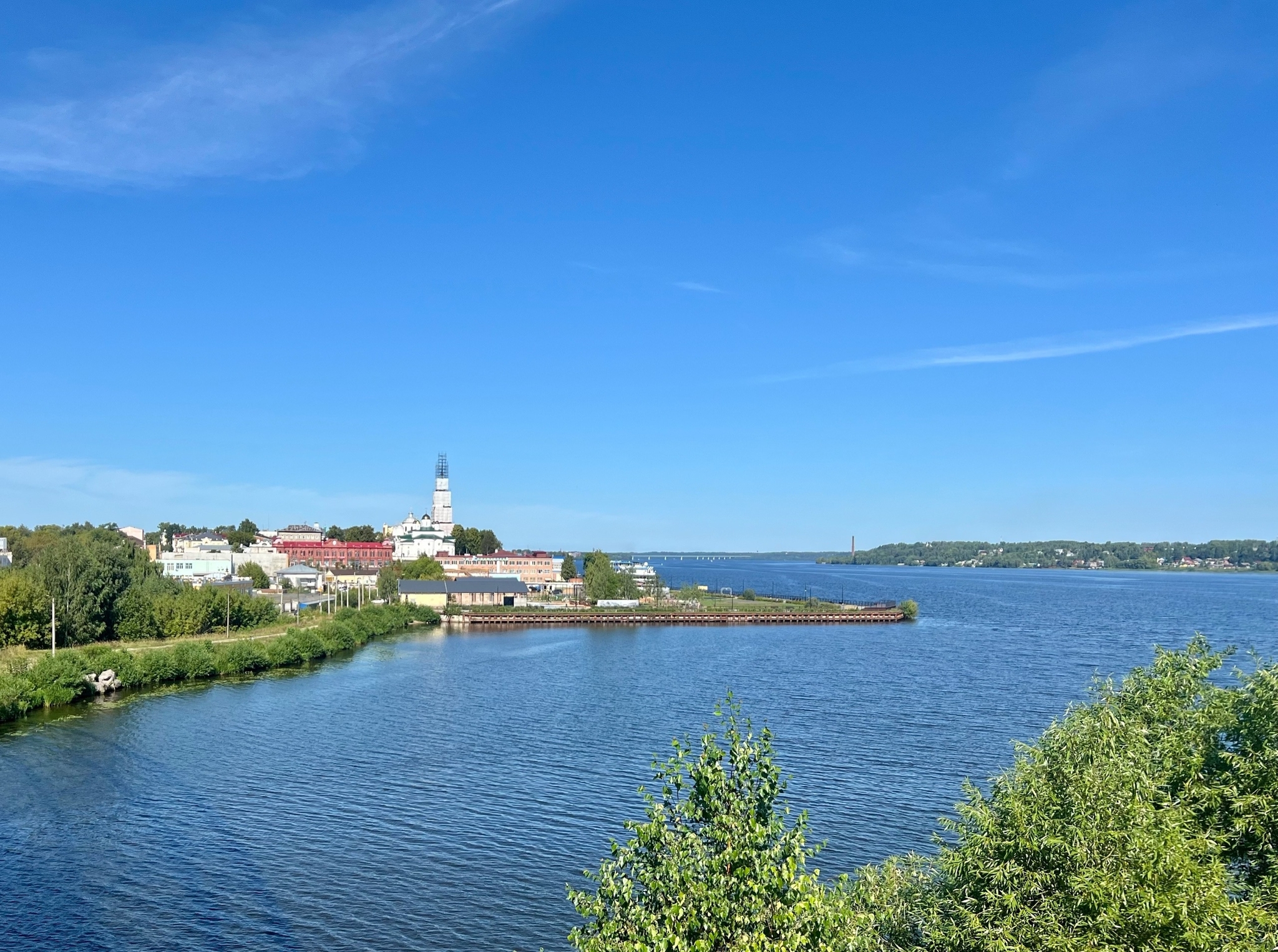 В Кинешме тоже есть колокольня, и достаточно высокая. Но она на реставрации, поэтому виды сильно страдают, поскольку сама башня затянута в строительные леса.
