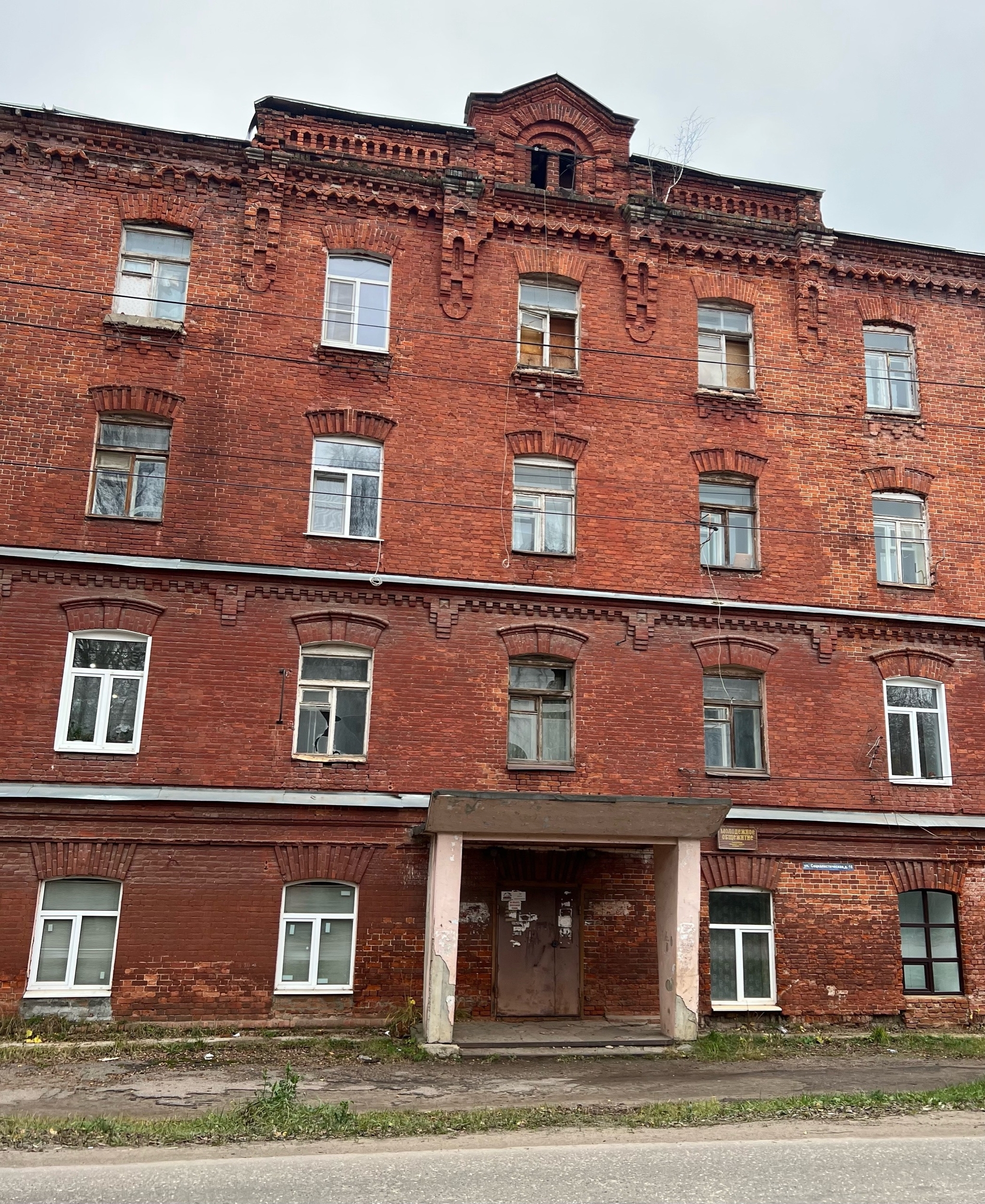 Вдоль улицы Социалистической размещены руины того самого строя – то общага текстильного техникума, то клуб, то огромный массив прядильно-ткацкой фабрики.