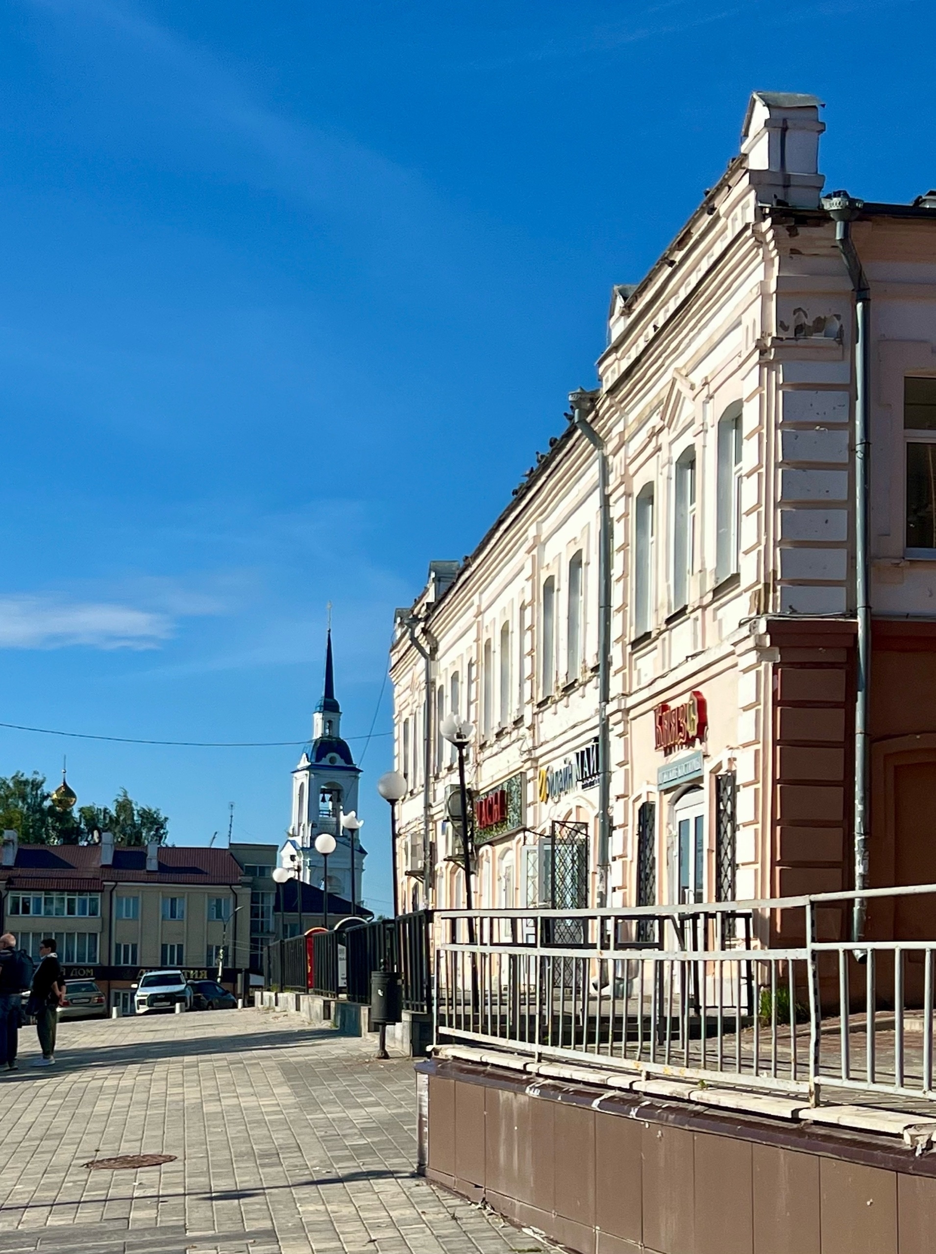 Пока шли обратно, успели прогуляться по ул. Ленина и Комсомольской. Деревянная архитектура перемежается с двухэтажными кирпично-деревянными домами, а в одном месте мы даже нашли участок булыжной мостовой.