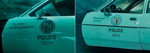 Когда Терминатор угоняет полицейскую машину и преследует на ней Кайла и Сару, то эта машина постоянно меняется. Для съемок использовали как минимум два автомобиля, у которых совершенно разные эмблемы на дверях (хотя обе круглые и номер – 1874 – остался неизменным), разные решетки радиатора и даже лозунг на водительской двери в начале погони гласит «To care and to protect» (Заботиться и защищать) а в конце – «Dedicated to serve» (Призванные служить). Двери тоже разные – на одной есть молдинг, на другой нет.