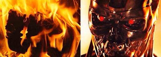 Терминатор горит. Отчетливо виден хорошо прокопченный череп.
