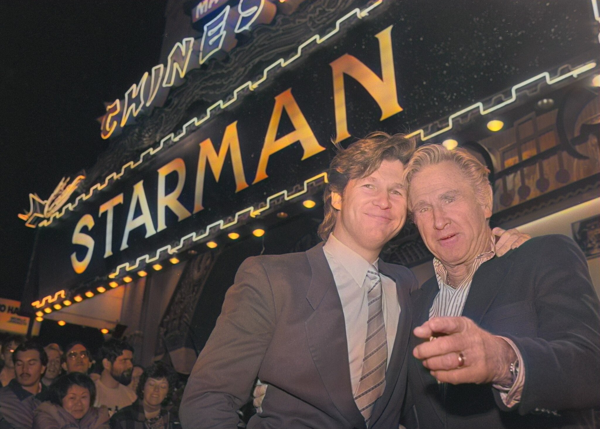 3) Джефф Бриджес вместе со своим отцом Ллойдом на премьере фильма "Человек со звезды" (1984). Джефф за этот фильм первый раз в своей карьере номинировался на "Золотой глобус", третий раз номинировался на "Оскар", а также впервые выиграл премию "Сатурн". Он пошёл в профессию по стопам отца, популярного в Штатах актёра, его наши зрители могут помнить по ролям в пародийных комедиях ("Аэроплан", "Горячие головы") в которых он снимался на закате своей карьеры.