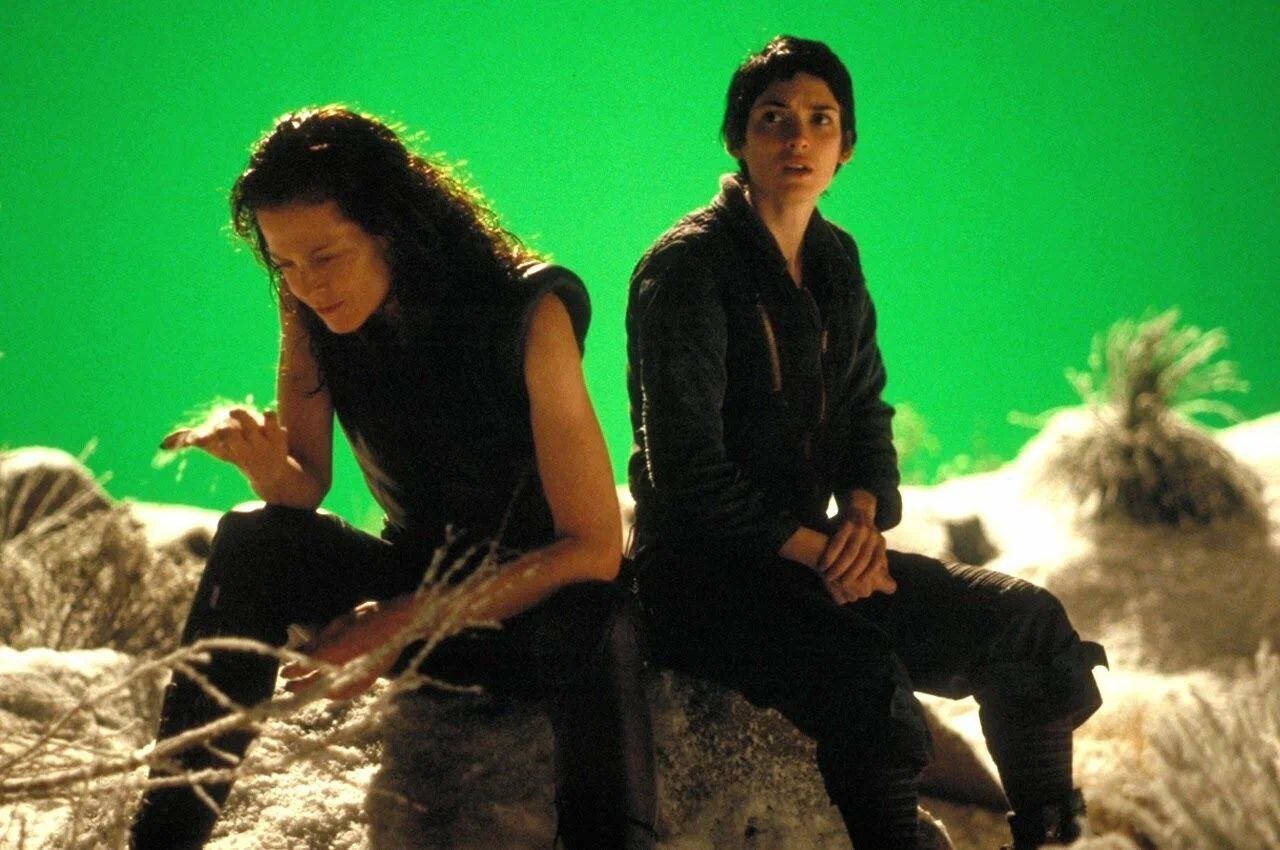 2) Сигурни Уивер и Вайнона Райдер на закулисном фото со съёмок фильма "Чужой 4: Воскрешение" (1997). Гонорар Уивер в 11 миллионов за этот фильм составил большую величину, чем весь бюджет "Чужого" (1979). Собственно актриса вернулась к своей знаковой роли непосредственно из-за денег. Райдер дала согласие на свое участие в фильме, даже не читая сценария. Она заявила, что сыграет любую роль, даже если её персонажу будет суждено погибнуть в первой сцене фильма. За свою роль она получила 2,8 миллиона.