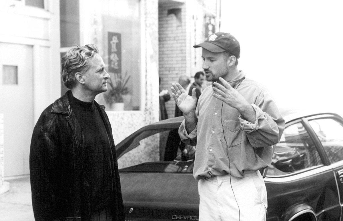 3) Майкл Дуглас и Дэвид Финчер на закулисном фото со съёмок триллера "Игра" (1997). Изначально Джоди Фостер была утверждена на роль сестры главного героя в исполнении Дугласа, но вскоре передумала и заявила, что хотела бы сыграть его дочь. Дуглас и Финчер были категорически против этого, так что в сюжет ввели младшего брата главного героя (его сыграл Шон Пенн). Фостер подала было в суд, требуя с киностудии неустойку в размере $54,5 миллиона, но вопрос удалось уладить во внесудебном порядке. Дуглас и Фостер являются друзьями, и актёр признавался, что мысль о том, чтобы играть отца героини Фостер, ему ничуть не импонировала, ведь разница в возрасте у них всего 18 лет.