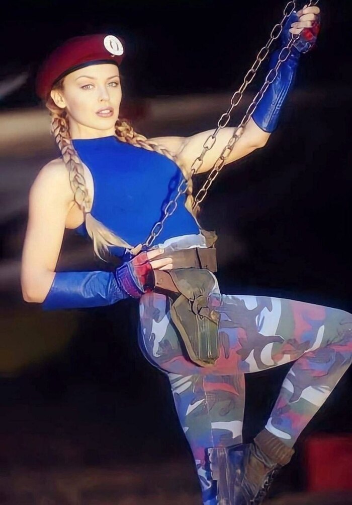 2) Кайли Миноуг позирует для промо к премьере боевика "Уличный боец" (1994). На съёмках Кайли времени зря не теряла, и успела закрутить роман с женатым на тот момент бельгийским пареньком по имени Жан-Клод Ван Дамм. Отношения продержались несколько месяцев - ровно столько, сколько снимали кино.