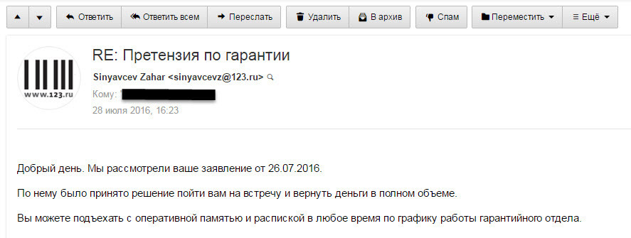 Заказал в этом "чудесном" магазине ОЗУ через интернет. В течении ~5 дней мне ее привезли, я пошел ее забирать, на радостях даже решил не проверять в магазине товар, да и это не помогло бы скорее всего. Пришел домой, решил проверить как будет работать на моем ПК. Открыл и заметил что разъемы другие. Глянув документы, понял что вместо нужной DDR3 заказал DDR4. На следующий день, вернулся в магазин и сказал что хочу вернуть товар, мне сказали что надо получить подтверждение из сервисного центра, что товар в рабочем состоянии. Сдал в сервисный центр, подождал в районе недели и пошел забирать (мне пришла СМС с уведомлением)