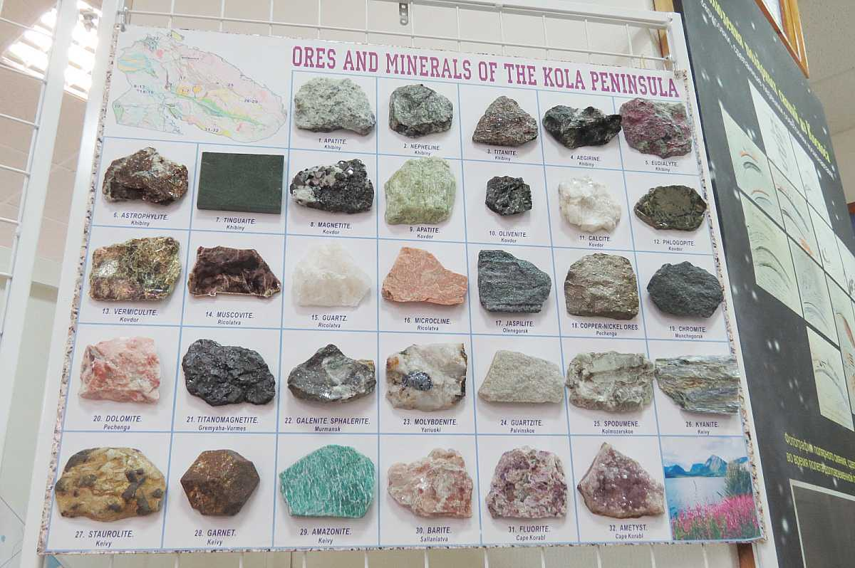 Помимо полезных ископаемых таких как Апатит и Нефелин, в городе Кировск также есть много красивых и полезных минералов. Им даже посвящен музей геологии и минералогии в соседнем городе Апатиты. Мы расскажем лишь про некоторые минералы, а подробнее о всех минералах вы можете узнать в музее, посещение которого мы очень рекомендуем, либо в одной из наших следующих статей)
