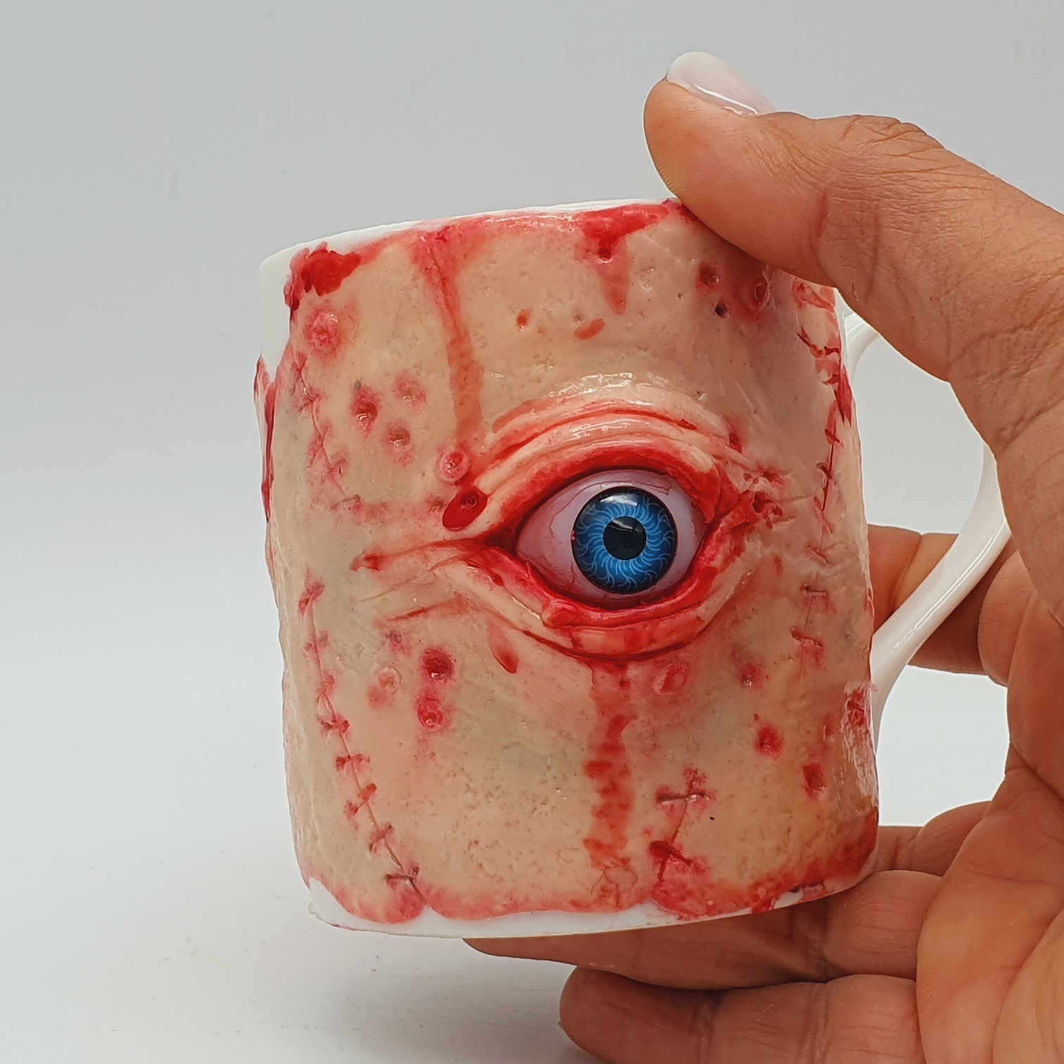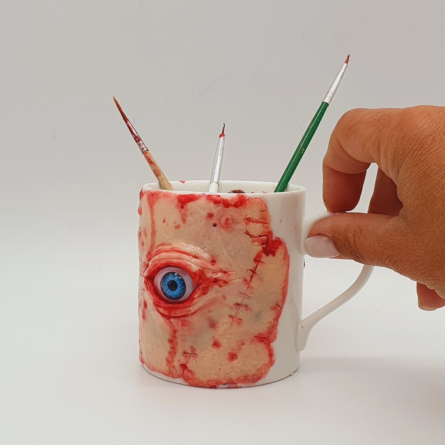 Нехитрым способом "вмазала" глаз в кружку. На обратной стороне вышла половина лысого Мимира (спасибо @JonyOdinson за идею, сейчас в работе несколько прототипов, скоро премьера)).