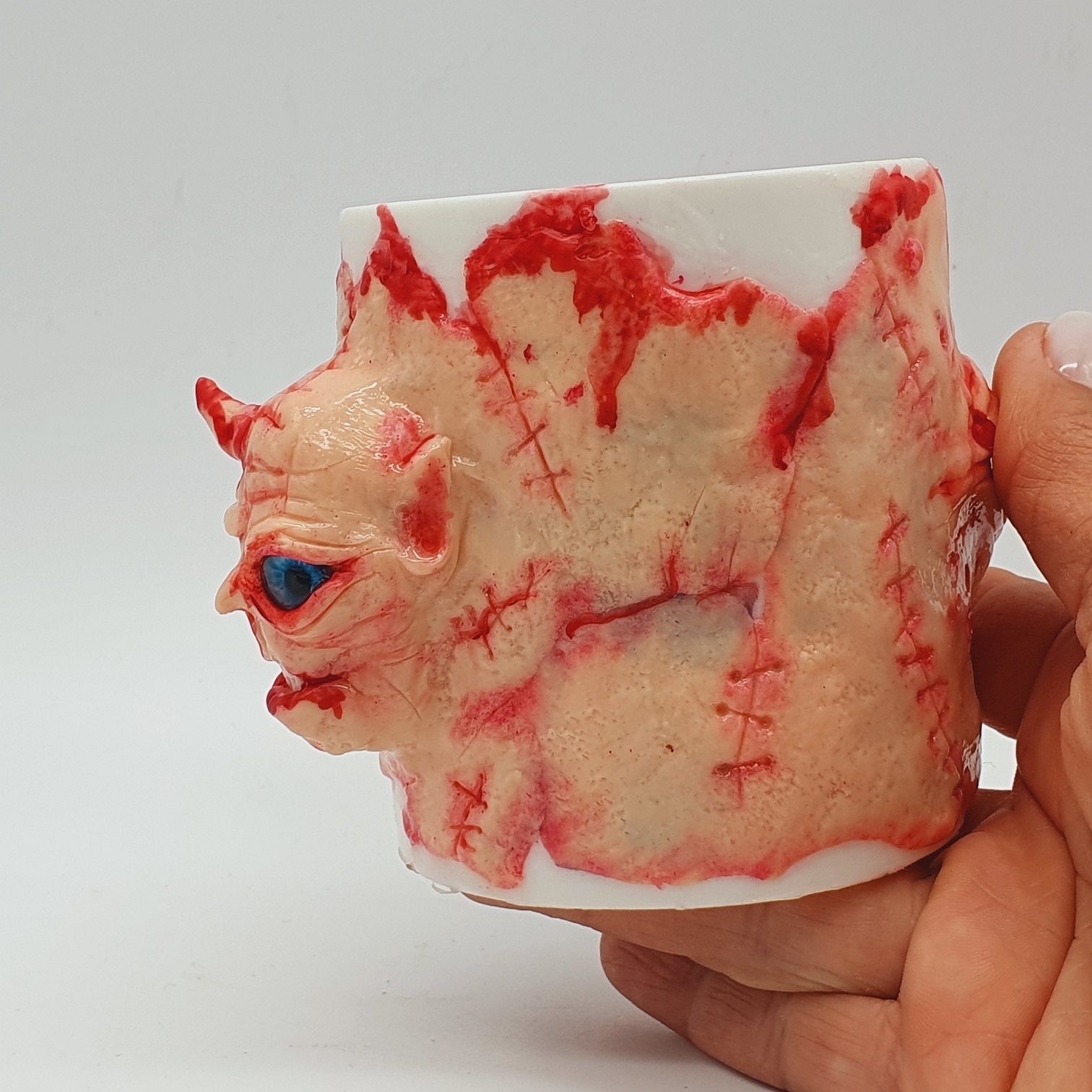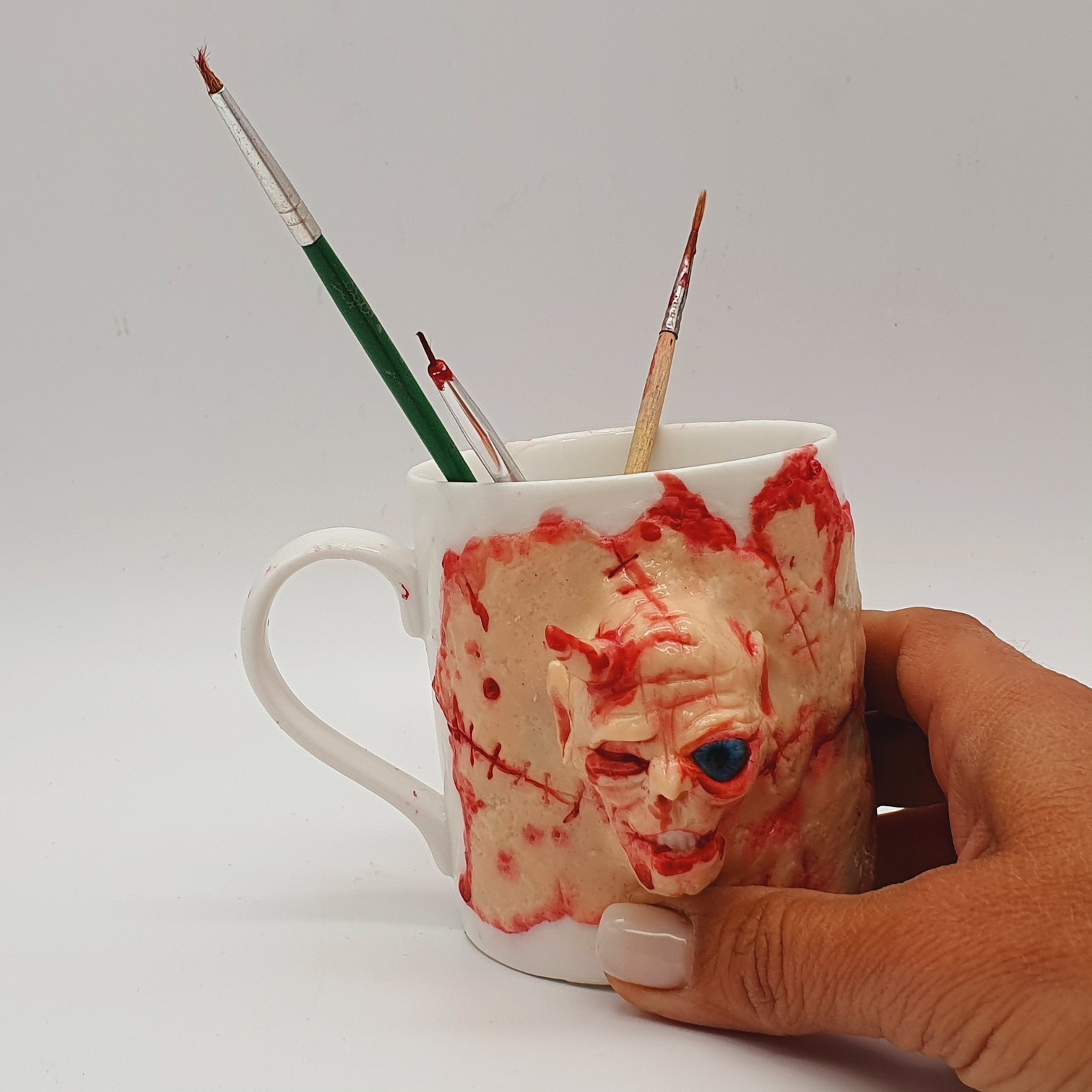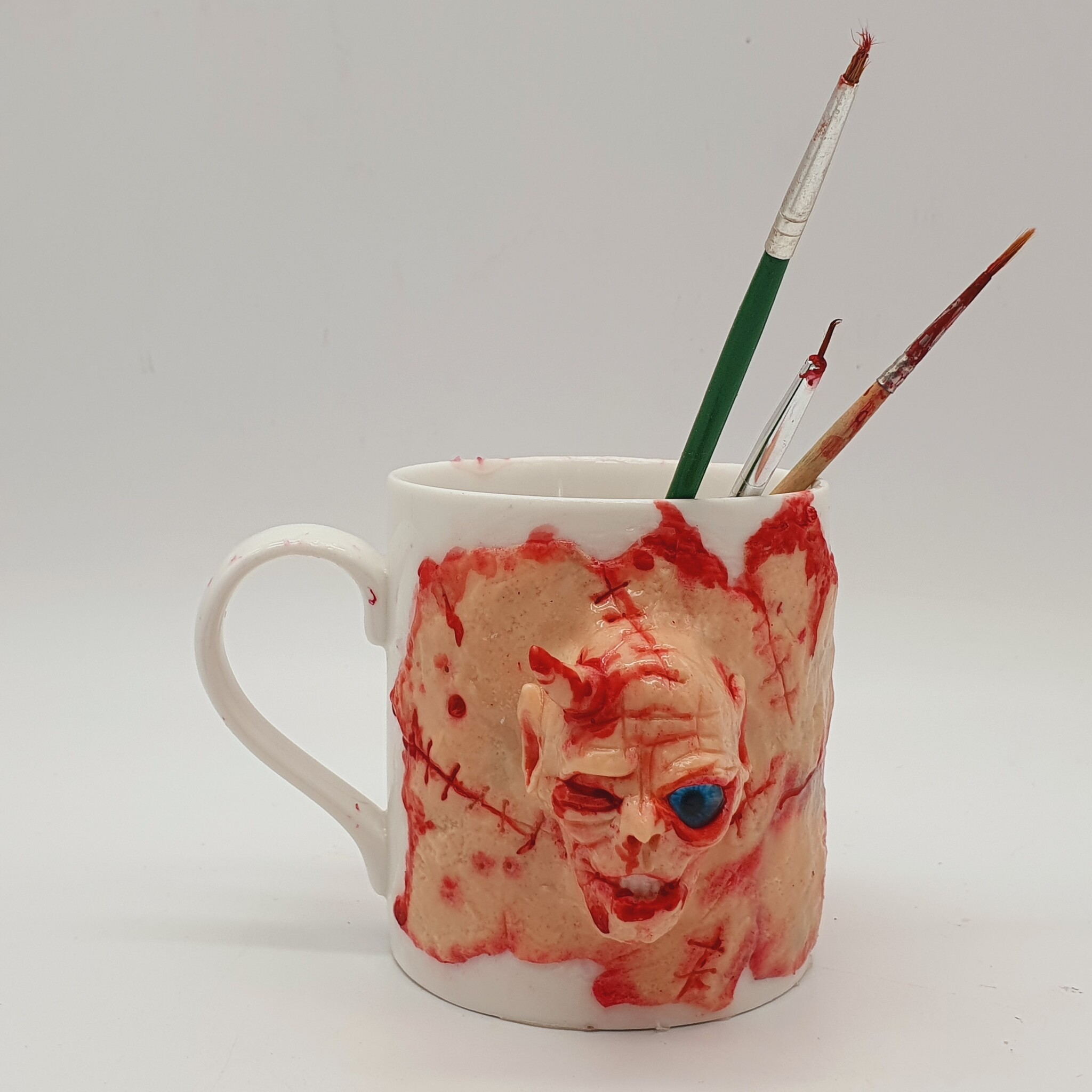 У меня под это дело была кружка с котятами, однако в руках оказался остаток массы для лепки и лишний глаз.