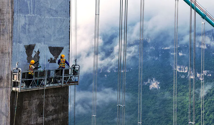 Мост через Большой каньон Хуацзян в китайской провинции Гуйчжоу — самый высокий мост в мире. (Wu Dongjun/VCG via Getty Images)