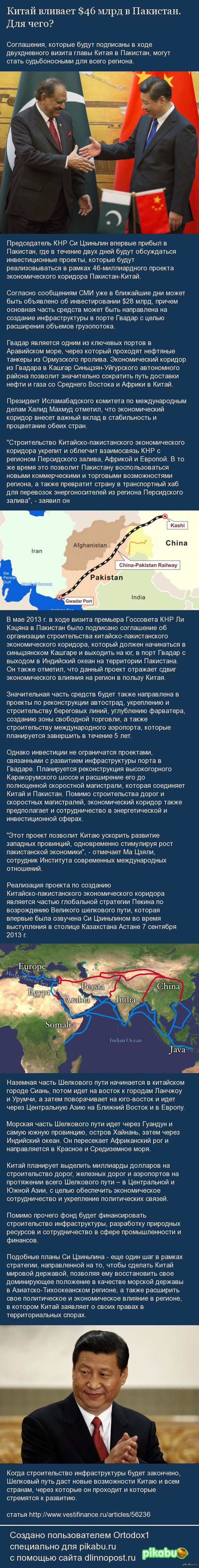 366 Ortodox1 10 лет назад Китай вливает $46 млрд в Пакистан. Для чего? ссылка http://www.vestifinance.ru/articles/56236 Китай Пакистан Нефть Газ Африка Европа Ближний Восток Политика Длиннопост