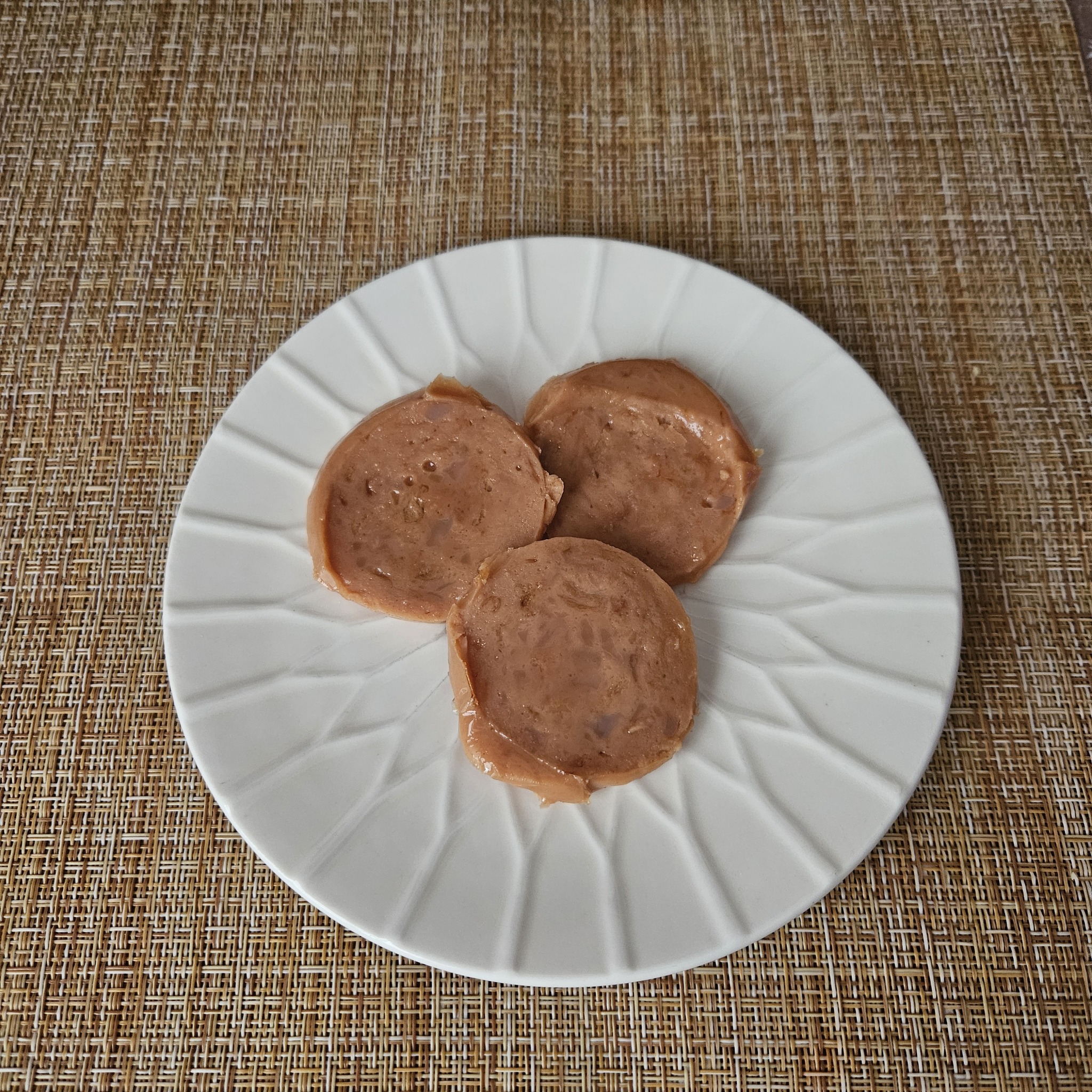 В следующем пакете три солидных куска колбасы. Пахнет приятно. На вид похожа на обычную варёную колбасу.