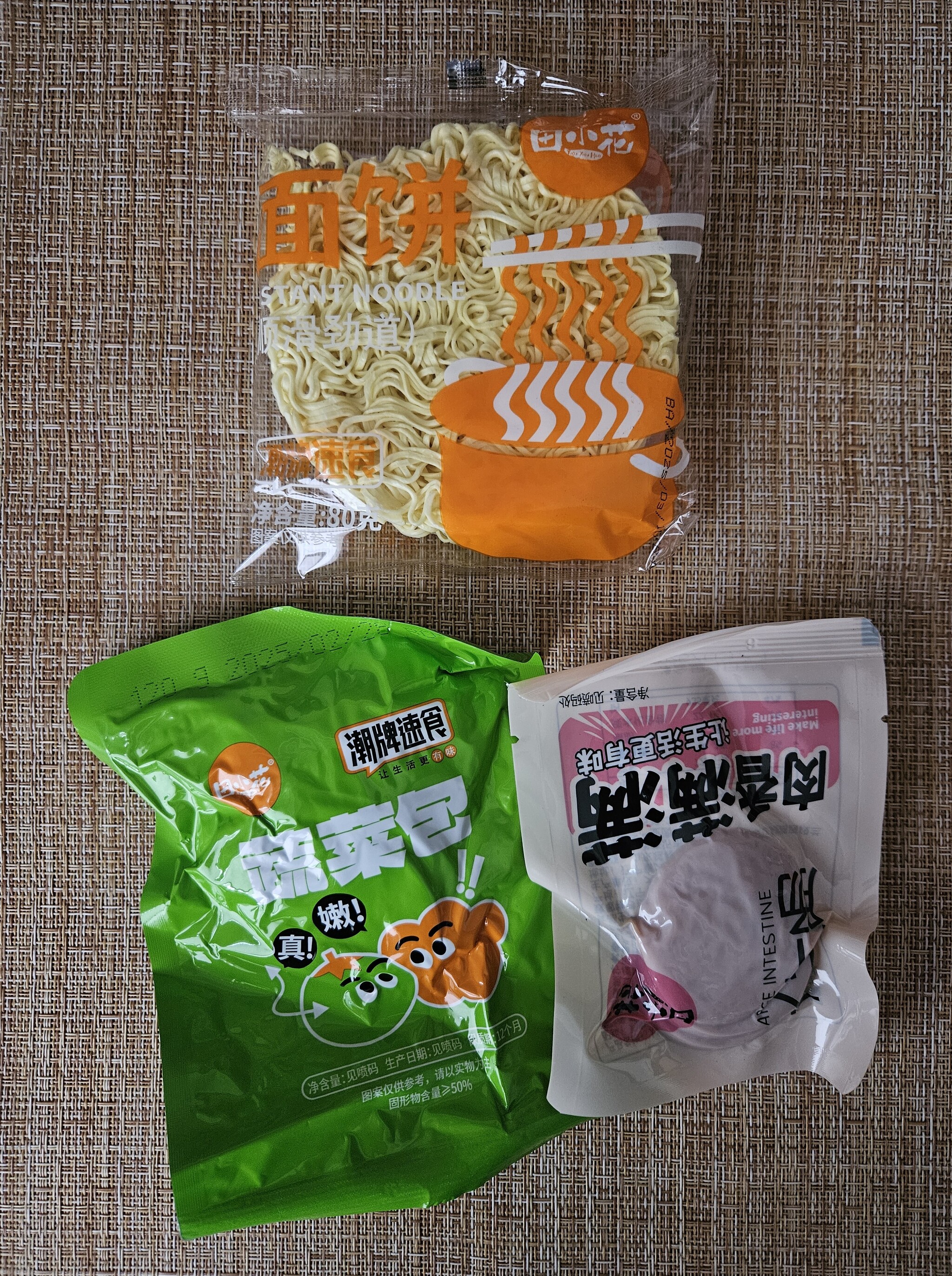 Всем привет! Сегодня суббота, а значит пришло время очередного отчёта о новой лапше. В этот раз мне удалось урвать на ВБ набор из трёх видов лапши с разными вкусами за 481₽. Для ЛЛ: лапша просто супер! Как по вкусу, так и по наполнению. Так как изображения на упаковках были примерно одинаковые, я тупо выбрал ту, что больше по массе. На упаковке всё на китайском языке, поэтому информацию буду получать с помощью переводчика. Сама упаковка большая, квадратной формы из мягкого пластика. Снаружи картонная обложка. Судя по переводу, лапша производится под торговой маркой Тянь Сяохуа. Итак, осматриваем.