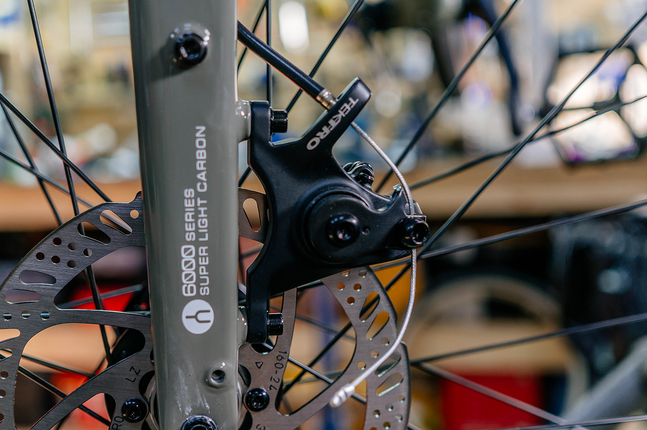 ✅ Тормоза - тектро, правда с одной подвижной колодкой. Ну не ноунейм Китай, и то хорошо.