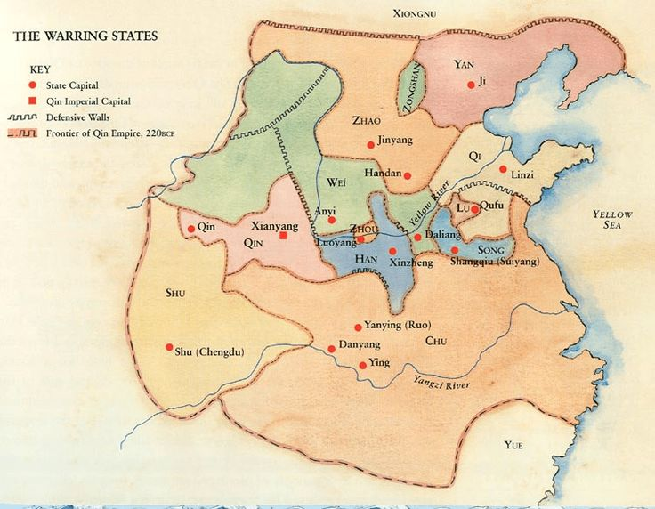 Пытливый читатель заметил, что я обошёл стороной самое северное государство - Янь. Всё потому что они не играли особой роли, тоже не были хуася, были бедными, неразвитыми. У них был один блистательный час, который они очень обидными образом слили. Кем были населены? Есть много теорий, но мне нравится та, которая доказывает, что это - недобитые жуны.