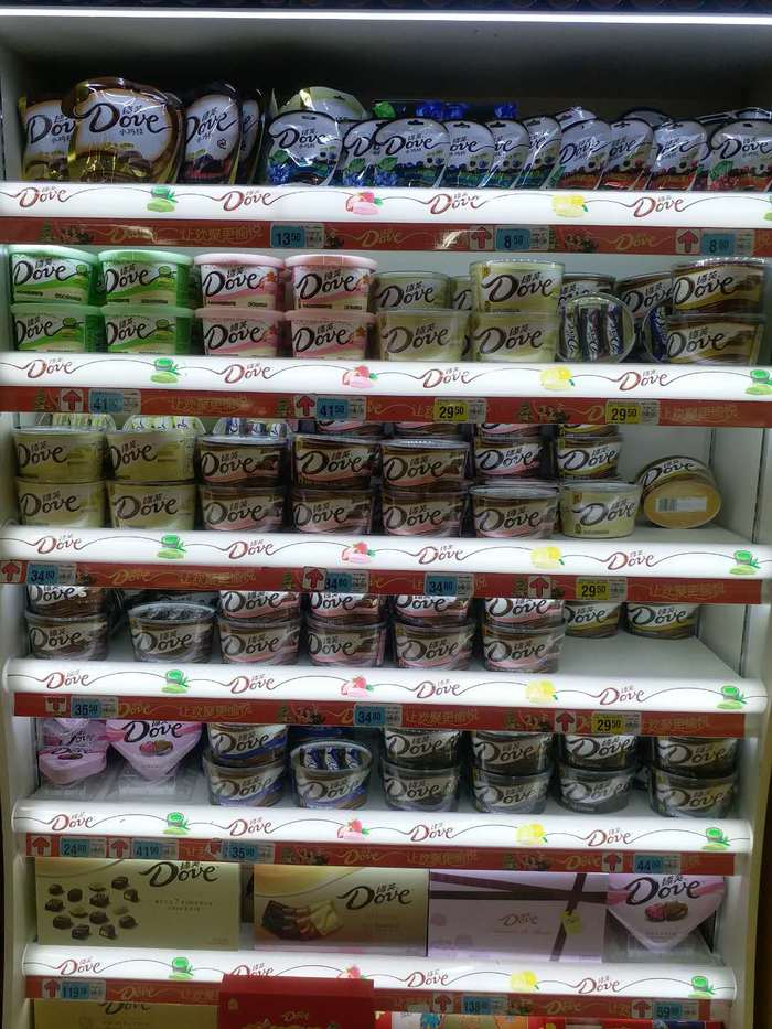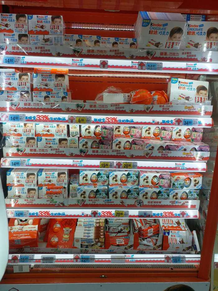 Вот так выглядит отдел со сладким. Куча фруктовых желе, муссов, пюре и прочего. Шоколад, печенье, вафли, это всё не в почете, конфет не много и они дорогие. Есть пара стендов с известными брендами, выглядит вот так: