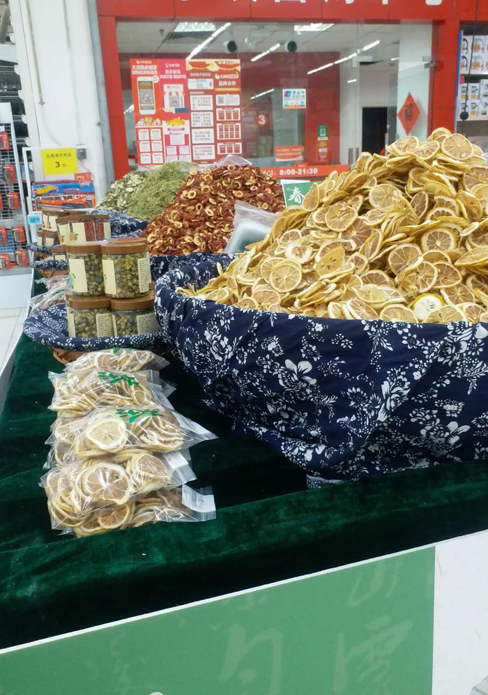 Заходим в Ашан и видим чай. Много чая. И всякие разные добавки в чай, типа сушеный лимон, всякие цветочки и т.д. Можно продегустировать, я видела, как китайцы пробовали разные сорта, выбирали.