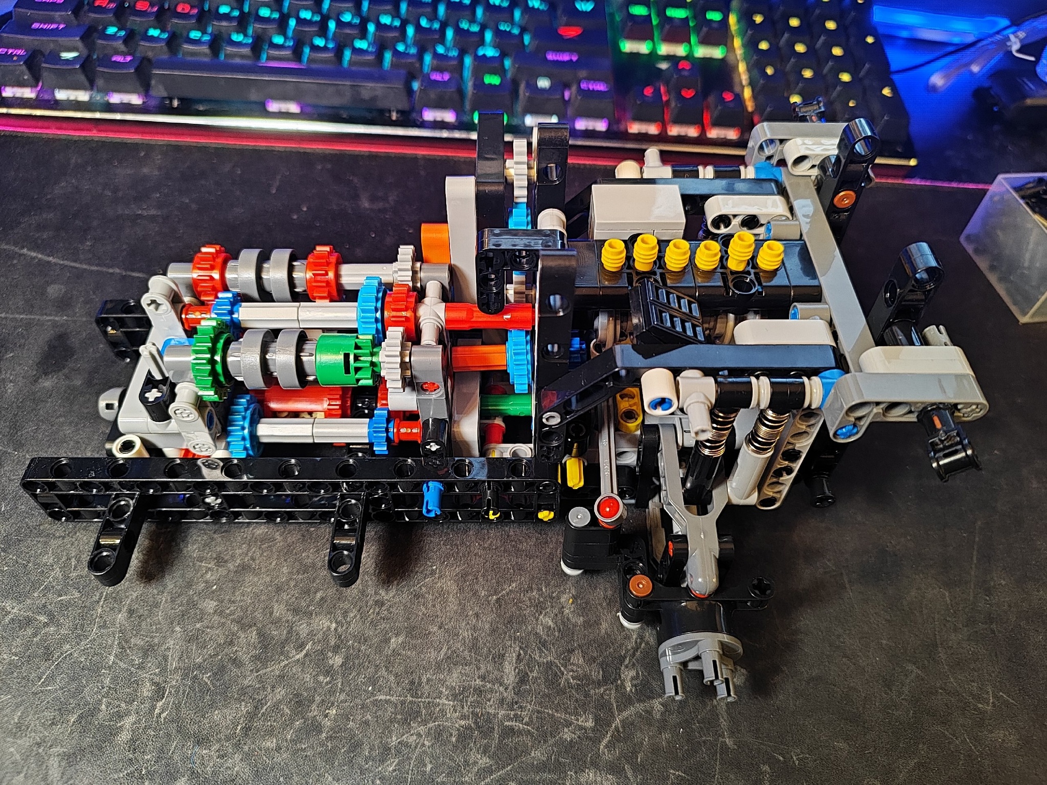 Пришлось поменять все шестеренки в диффах, все пины с трением на аналогичные без трения, чтобы коробка хоть как то начала работать, часть цветных осей. После этого с трудом но коробка начала нормально функционировать, как и блокировка заднего моста. С дефолтными деталями это работать конечно не будет
