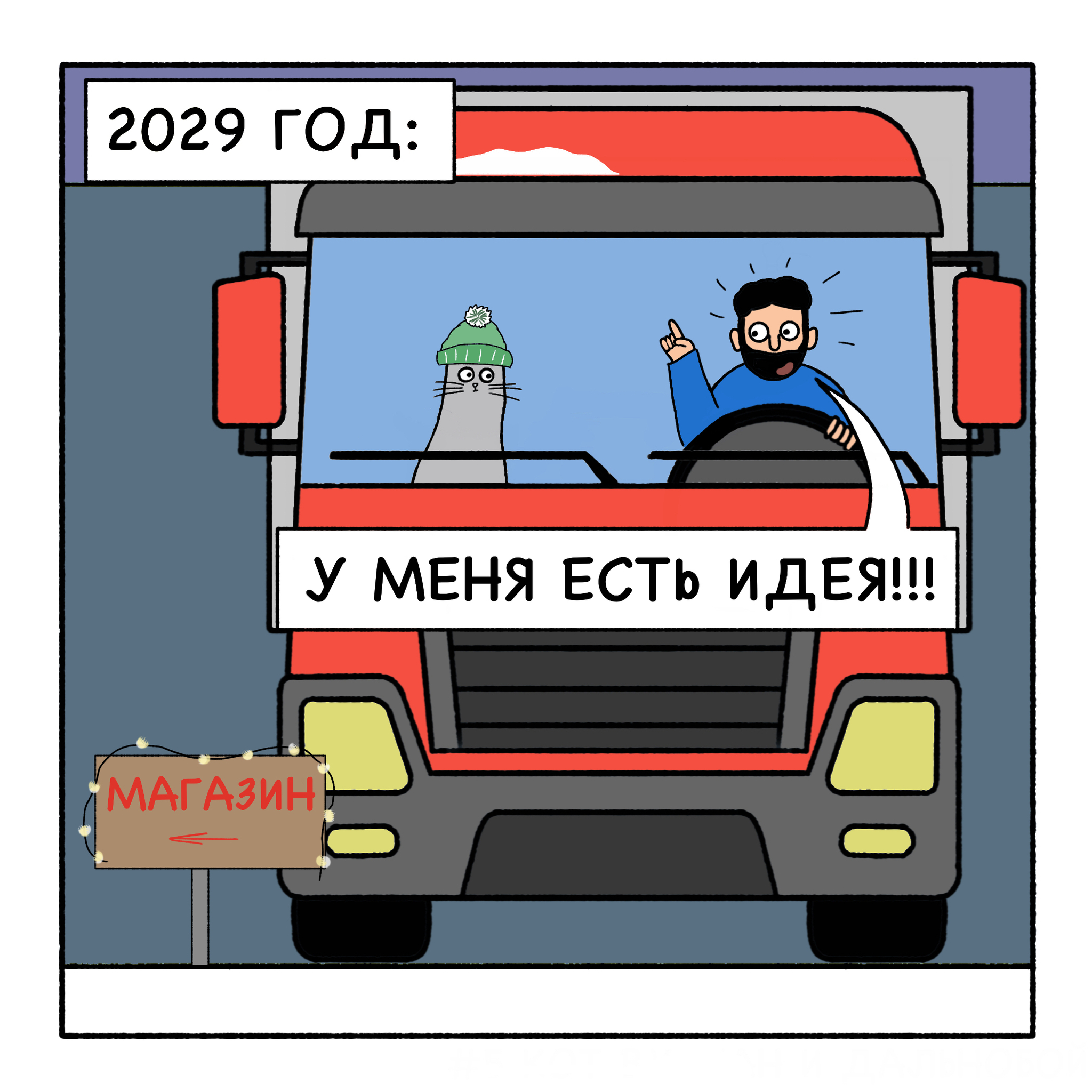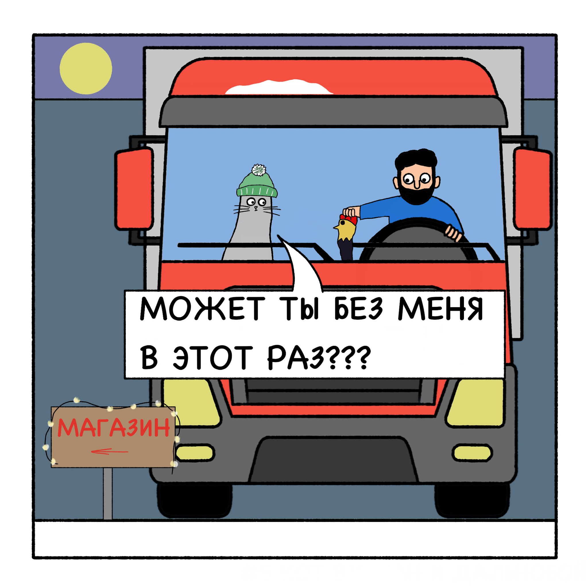 Кот Вулкан и дальнобой едут далеко-далеко. В дороге дальнобоя развлекает очень эрудированный и умный кот Вулкан.