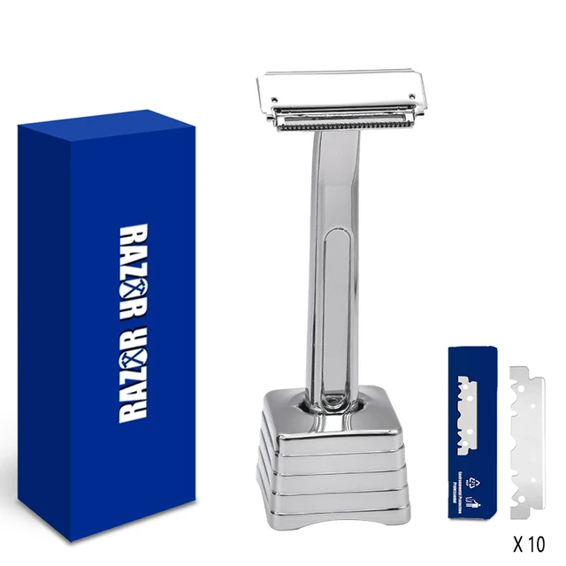 Выпускается в нескольких цветах. В комплекте идёт и подставка. На озоне заявлено что ручка из цинкового сплава, а сама голова - из нержавейки. Весь вес приходится на ручку. Бритва имеет два отсека для лезвий и во обоих отсеках агрессивность показалась идентичной. Крышка фиксируется на зажиме. Бритва считается агрессивной.