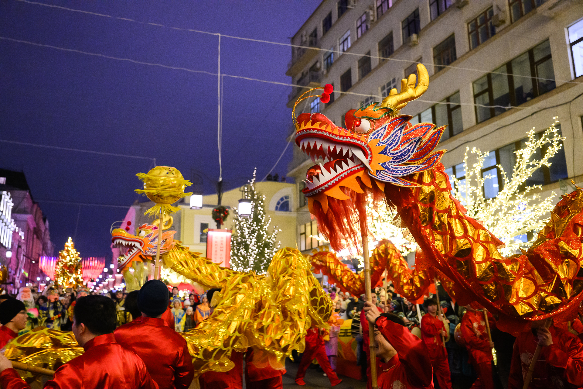 Снимал репортаж для клиента с парада артистов в честь Китайского нового года 28.01 Маршрут: Тверской бульвар - Тверская площадь - Камергерский переулок