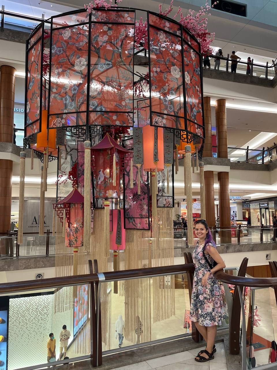 Людей было целое море, но все были такие улыбчивые и радостные, что это ничуть не напрягло. На глаз легко было поделить их на тех, у кого ещё нет подарка для кого-то, судорожно перебегающих от магазина к магазину, и тех, кто пришел просто на променад и неспешно фланировал по широким коридорам, рассматривая роскошное убранство и фотографируясь. Из занятного: отличным подарком считается еда, причём в том числе и фрукты. В продуктовом магазине были целые отдельные островки с красиво упакованными фруктами и сладостями - для подарков. Вообще, мне рассказывали, что китайцы - практичные ребята, и традиционным подарком считаются деньги в красных конвертах, но насколько придерживается этих традиций Малайзия, мне неизвестно. Судя по толпам в магазинах, дарить они предпочитают всё-таки вещи или подарочные сертификаты. А пару раз я была свидетелем сцен, когда в магазин приходила парочка, один долго что-то себе выбирал и показывал пальцем, а другой потом это покупал и вручал первому. У нас я видела в основном ситуации, когда девушка выбирает себе подарок, а мужчина потом оплачивает его, в Малайзии же такого разделения по полу нет.
