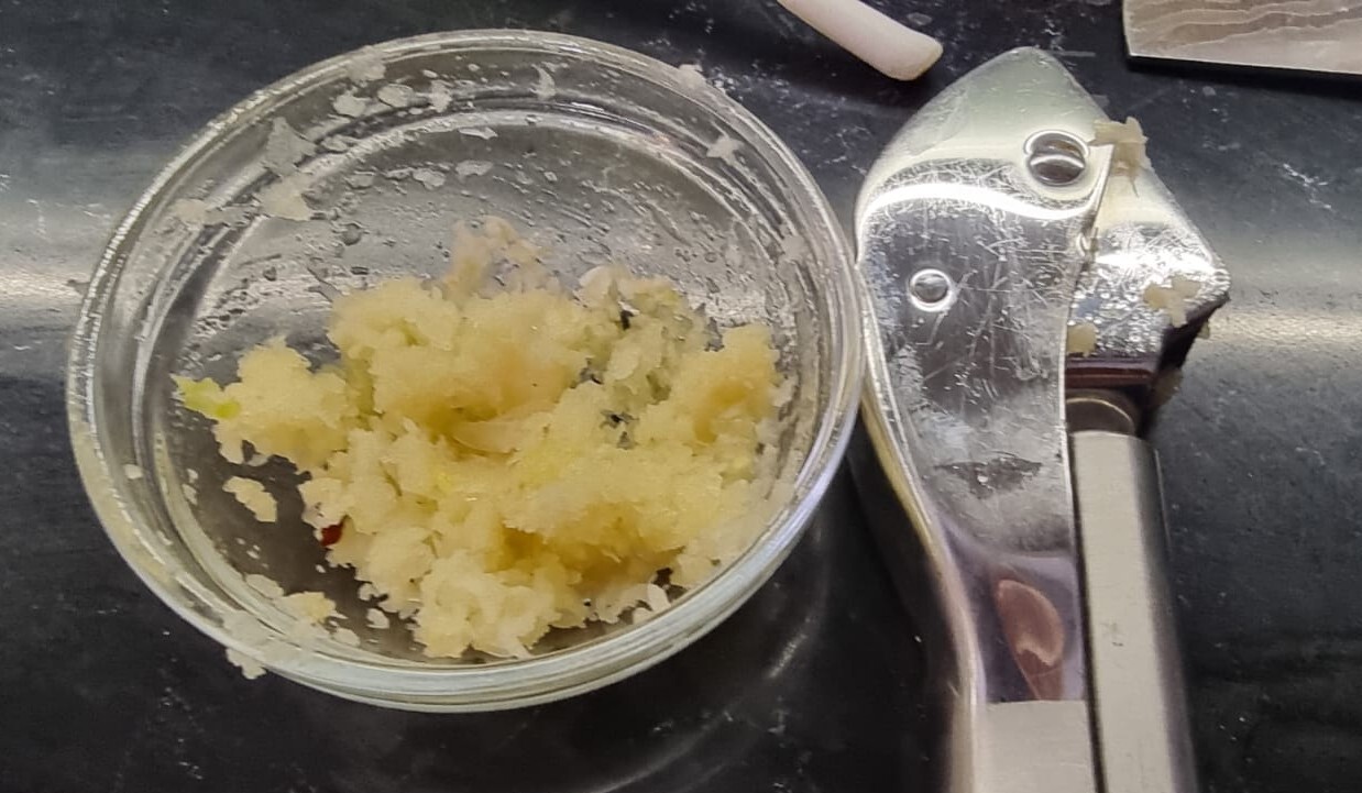 14. Чеснок. 2-3 зубчика. На фото уже выдавленный через чеснокодавку.