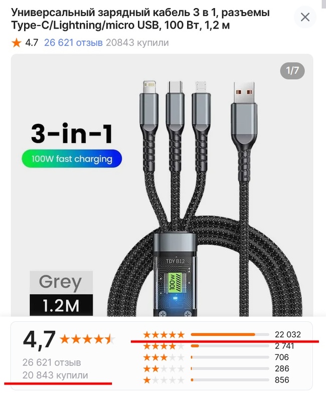 По факту этот кабель опасен. Если сначала подключить к нему устройство, которое сменит стандартный пятивольтовый режим на быструю зарядку 9 или 12 вольт, то на остальных хвостах тоже будет это напряжение. Что случится в момент подключения к другим хвостам стандартного 5-вольтового устройства, я не знаю. Надеюсь, что у него будет защита от высокого напряжения.