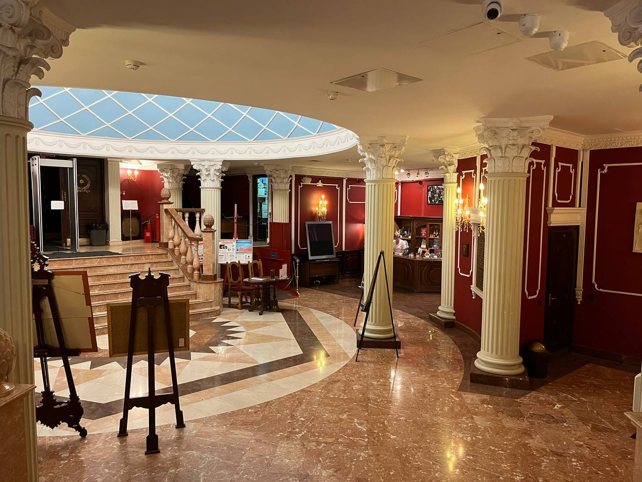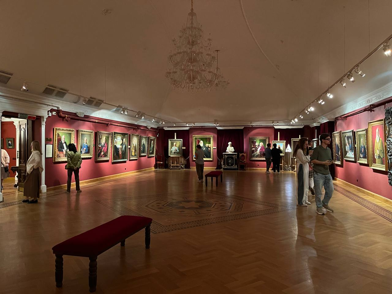Здесь всё сияет: люстры, колонны, идеально отполированные полы. Это не просто галерея, это почти что дворец, храм, в честь одного художника.
