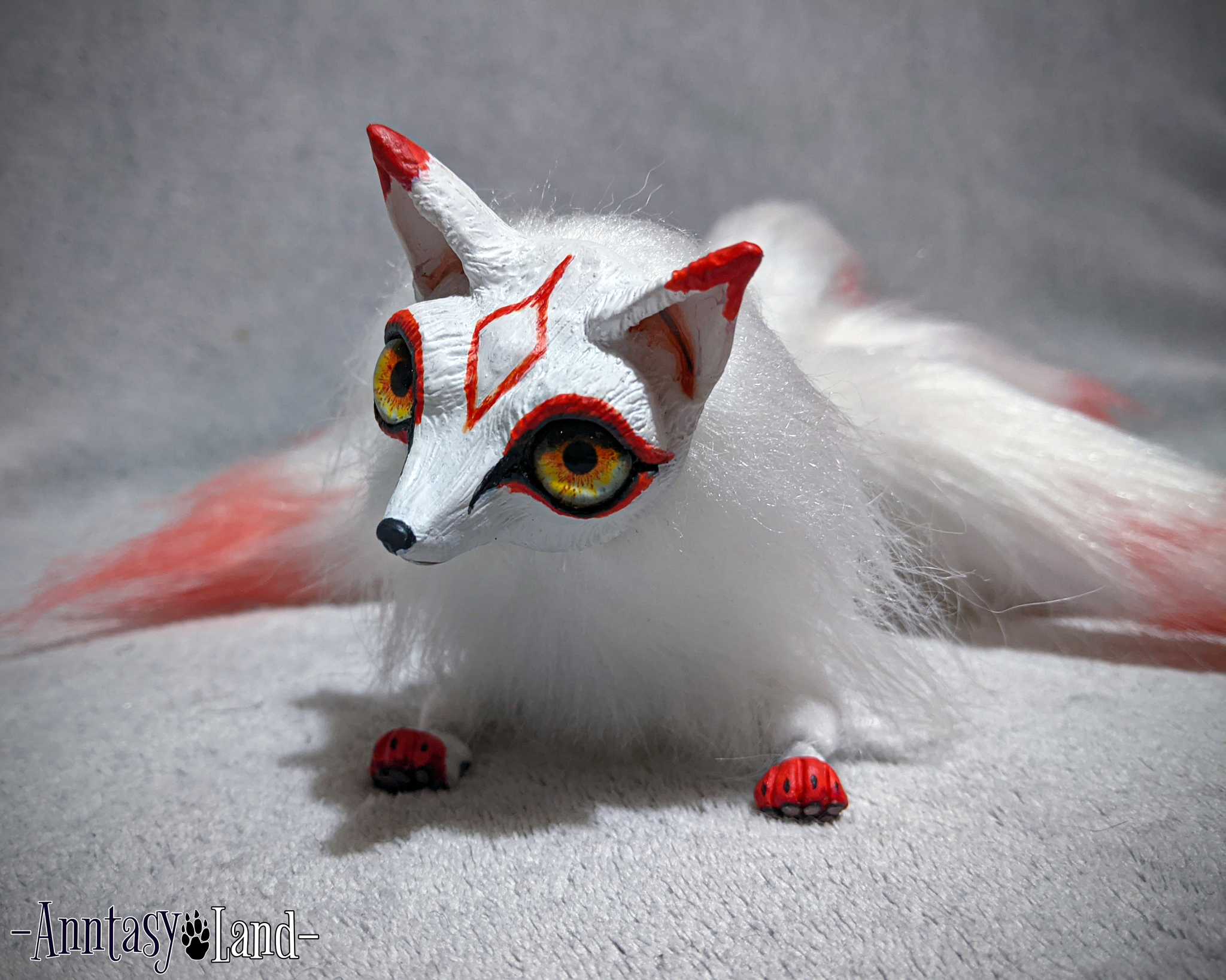 Девятихвостая лисичка Кицунэ в смешанной технике.