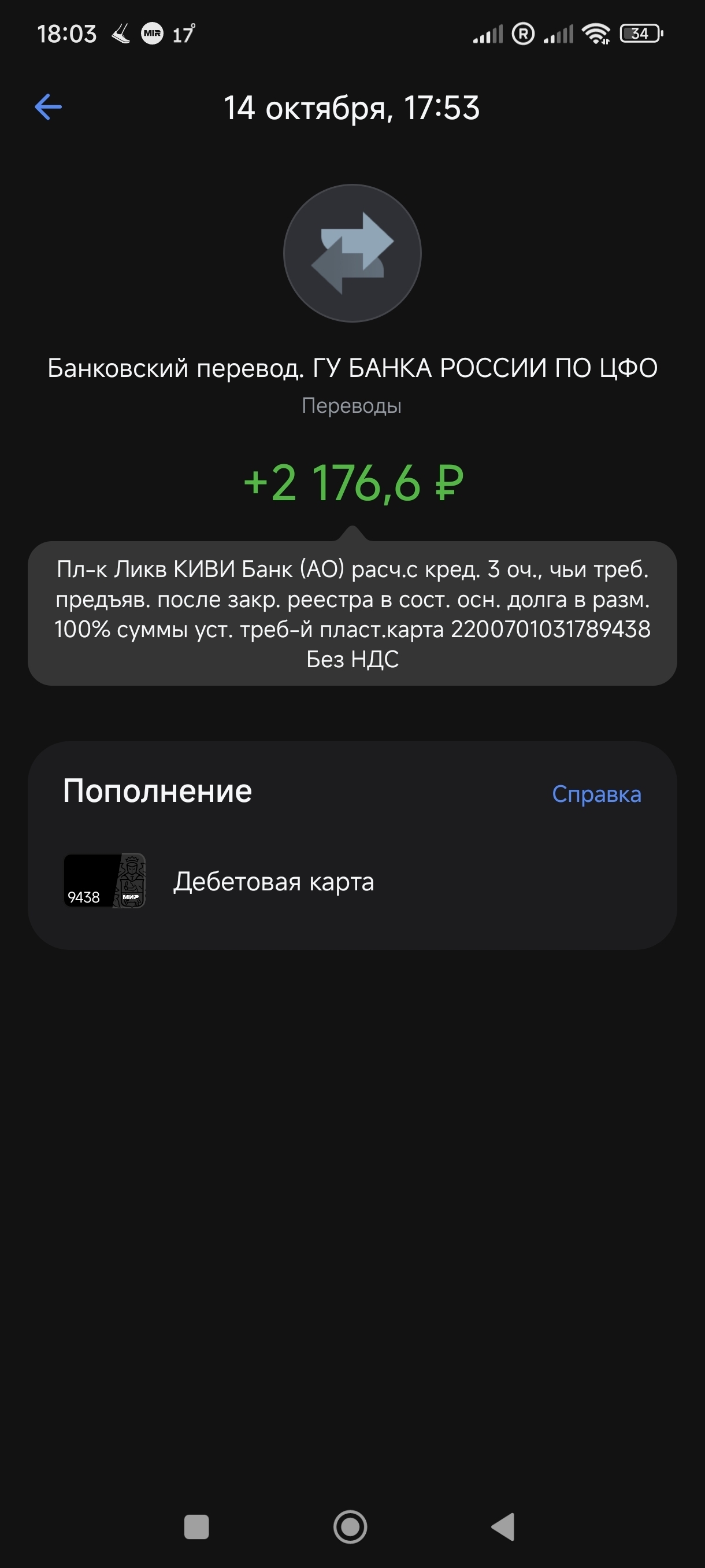 Если, честно не обратил внимания от кого именно пришли деньги, увидел слово киви и доплата до 100%