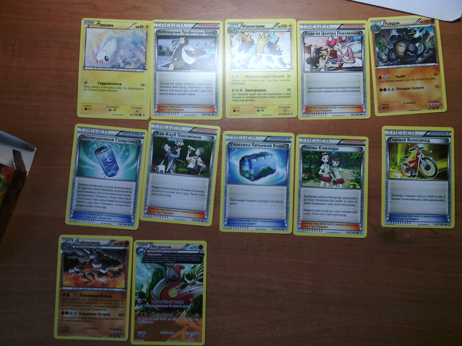 Вот фото всех карт, которые есть(без повторяющихся). Из всего этого следует, что самые нормальные тут это: эволюционная ветка Райхорна, Гроудон и фулларт Медичам