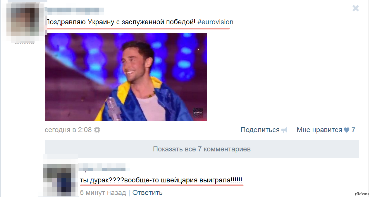 2805 AshyWooLF К-комбо 10 лет назад [моё] Евровидение Швеция Швейцария ВКонтакте Скриншот Комментарии Троллинг Украина