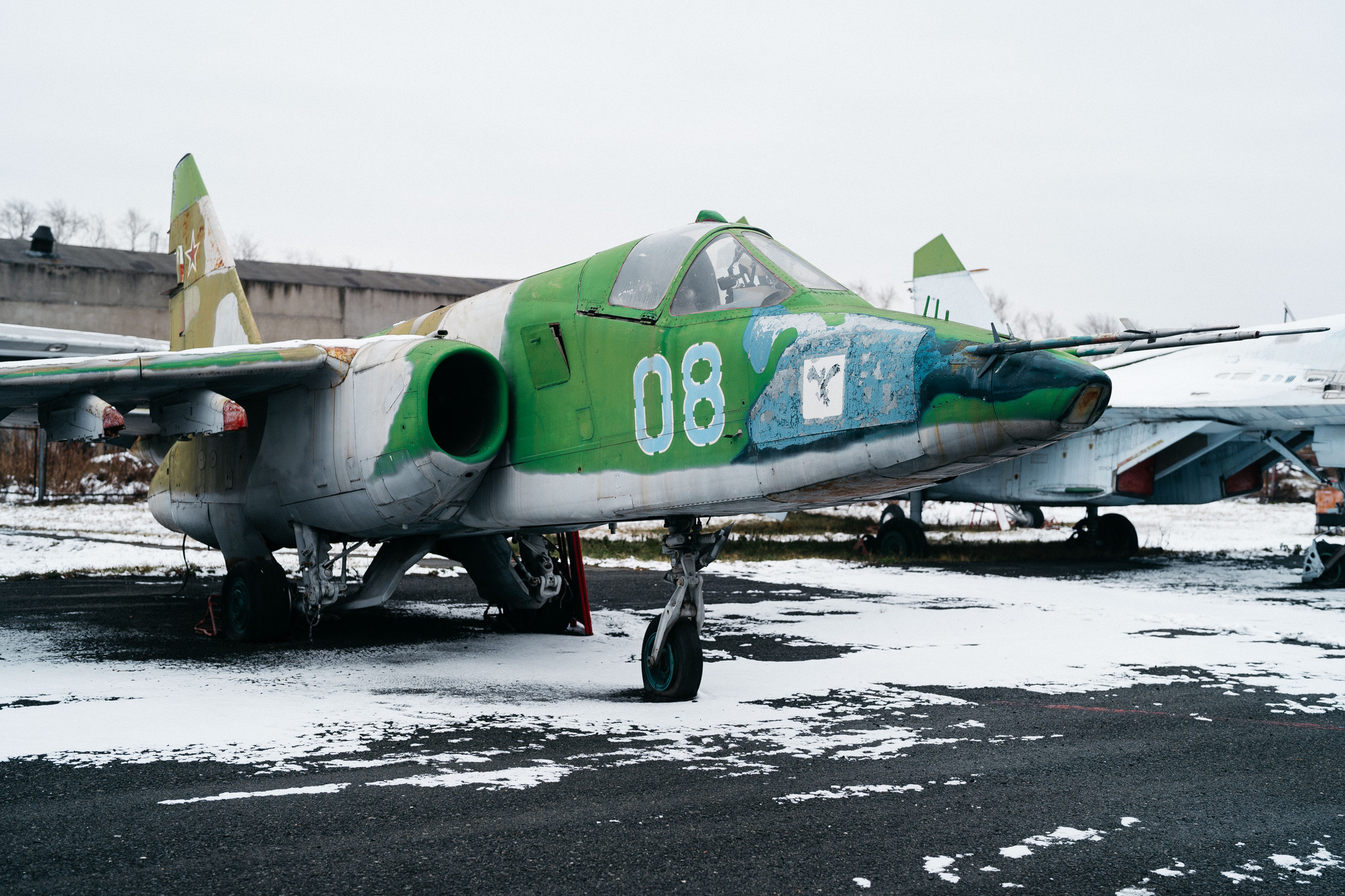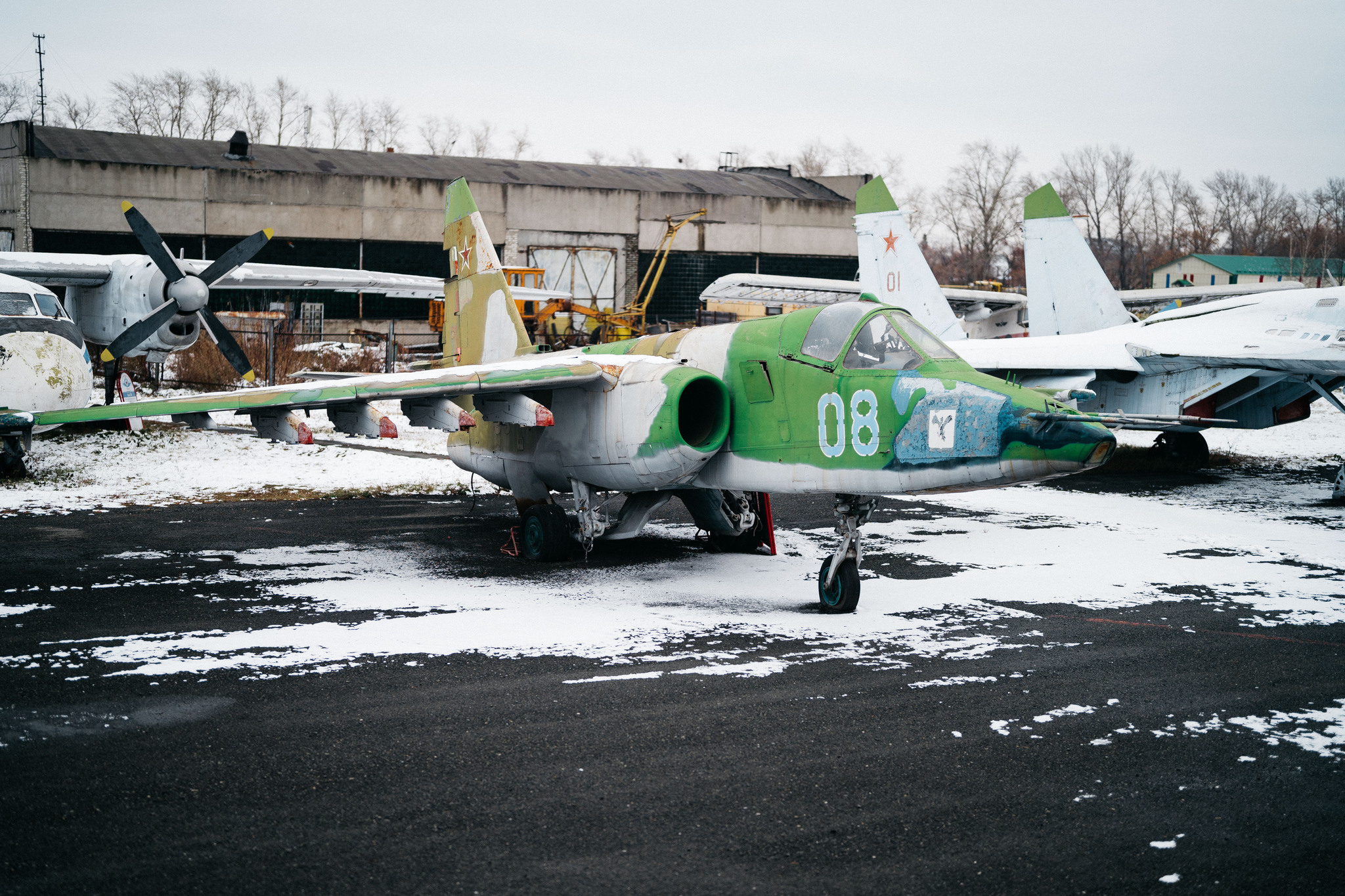 Под открытым небом вас будут ждать: фронтовой истребитель МиГ-17, истребители – перехватчики Миг-19П и МиГ-21ПФ, учебно-боевой истребитель МиГ-23УБ, истребители – бомбардировщики Су-7Б и Су-17УМ-3, фронтовой бомбардировщик Су-24, штурмовик Су-25, многофункциональный истребитель Су-27, многоцелевой самолет Ан-2, пассажирский самолет Ан-24Б, транспортный самолет Ил-14Т, пассажирский самолет Як-40 и вертолет Ми-2. Был еще Як-52, но его лет 8 назад ДОСААФ вывез из музея.