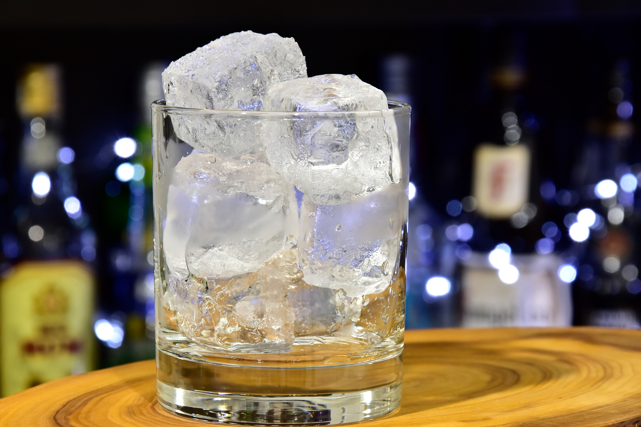 Закидываем в бокал лед, помешиваем его ложкой для охлаждения. Затем выкидываем и заменяем на новый: