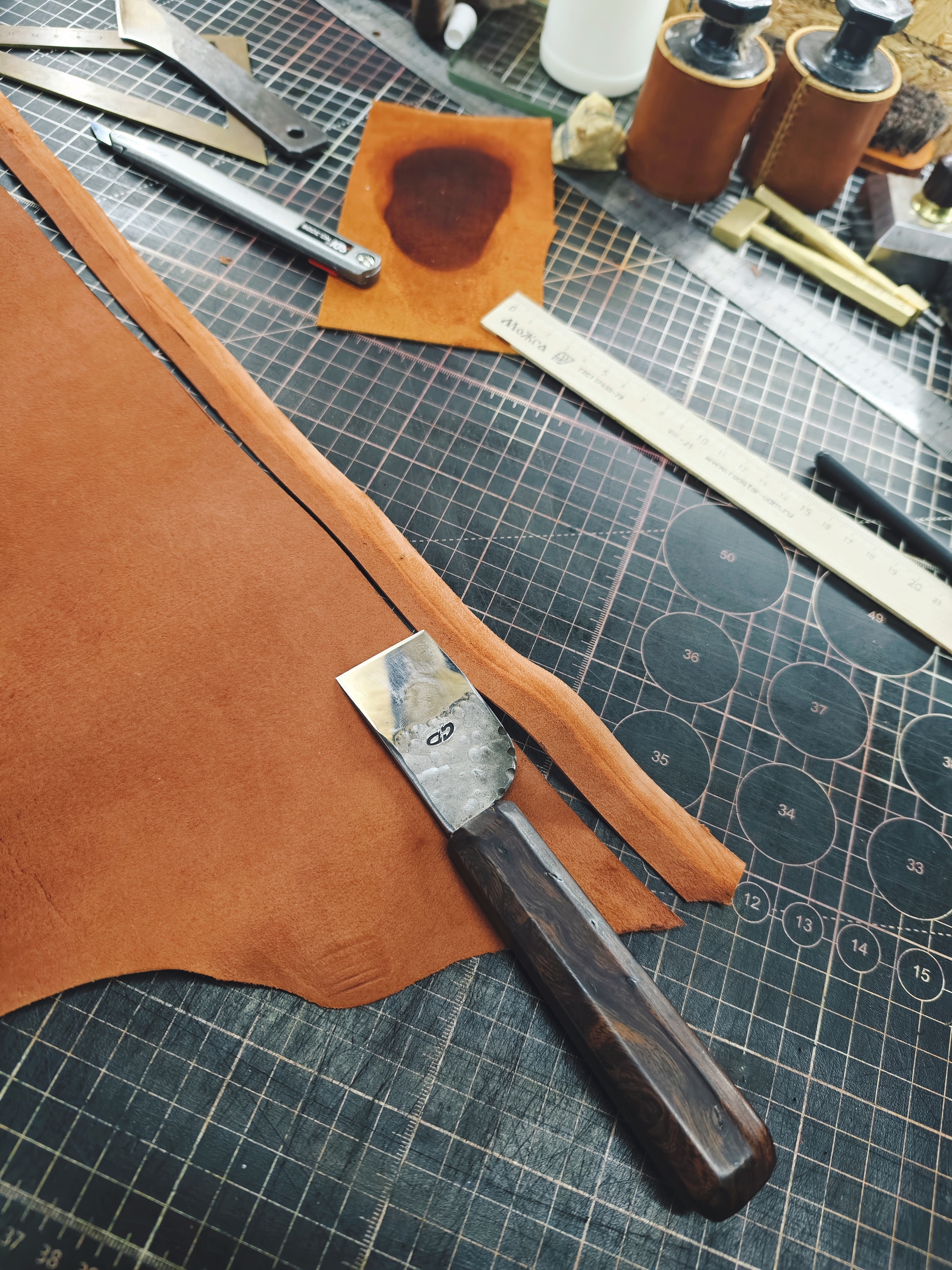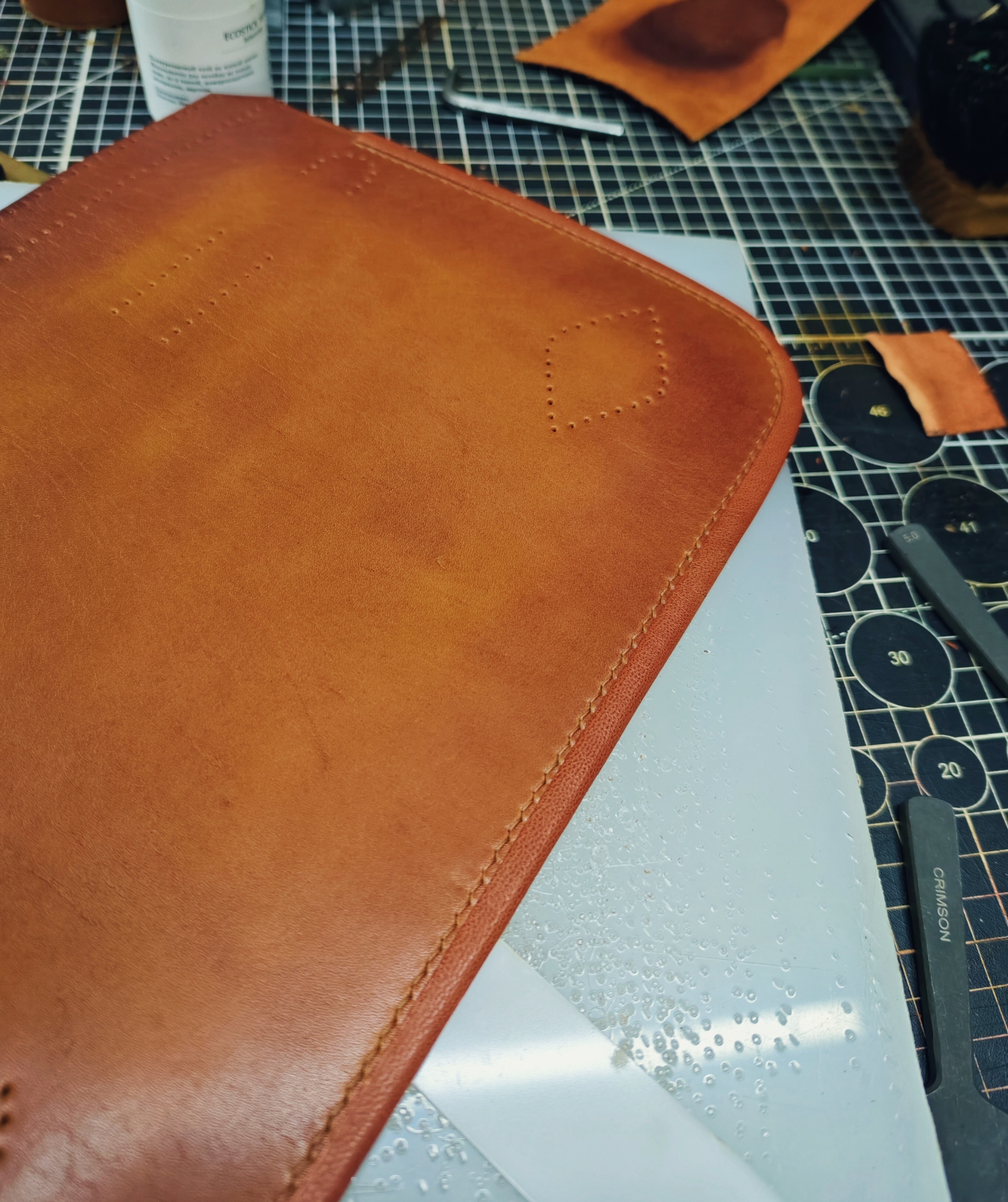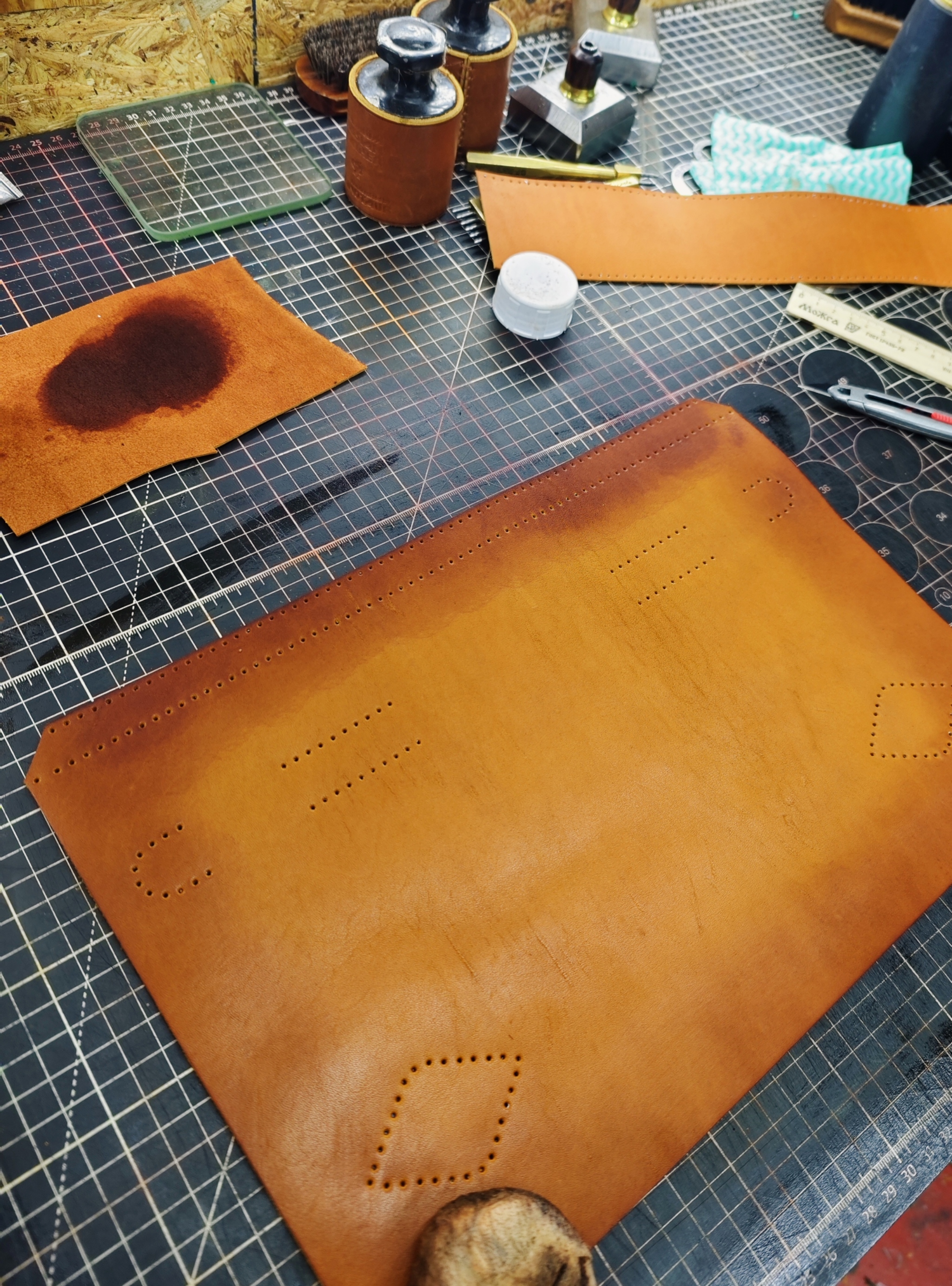 Далее, начинается чистое творчество. Кожа у меня краст (кожа без Завадского финишного покрытия), в толщине около 2,6 - 2,8 мм.