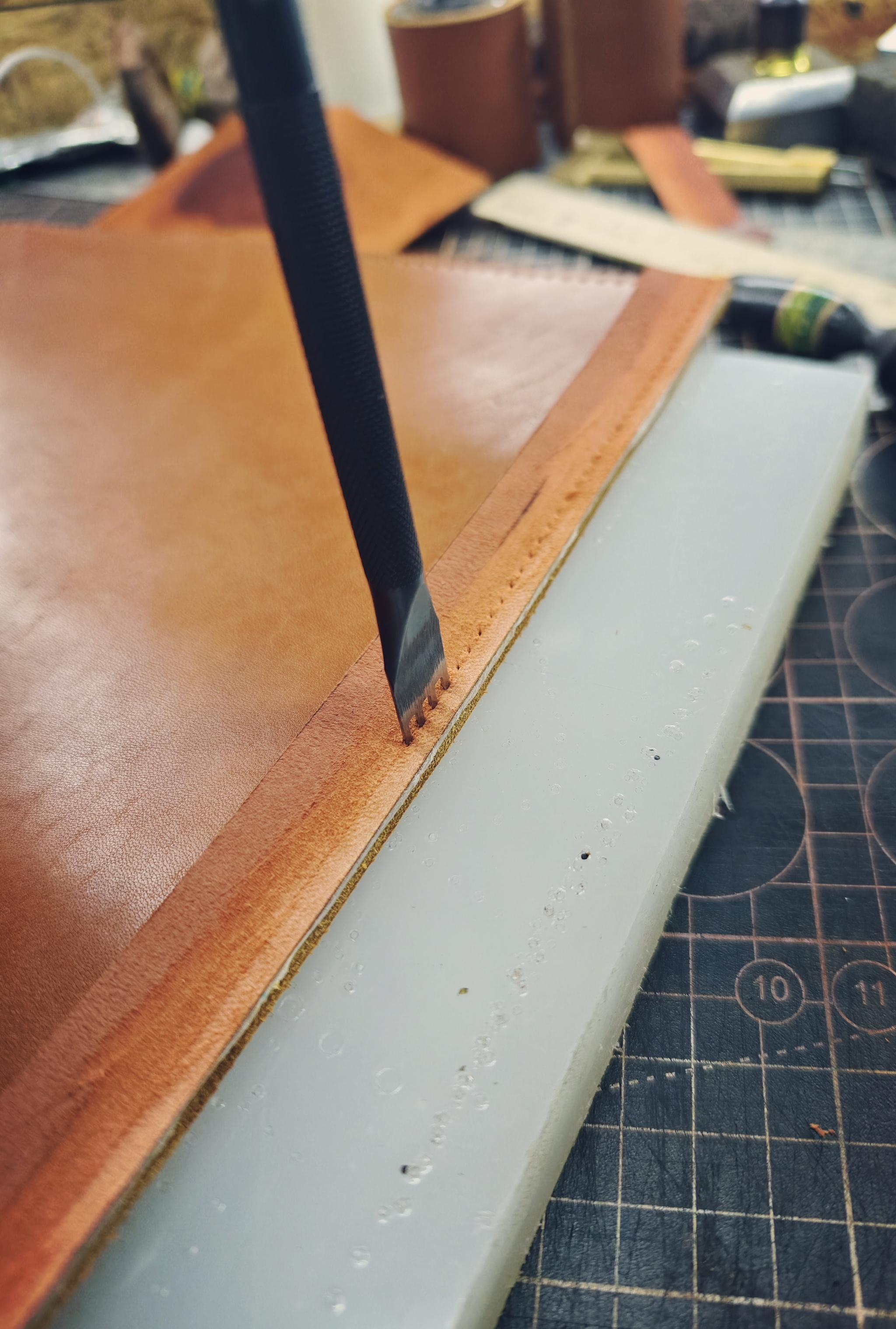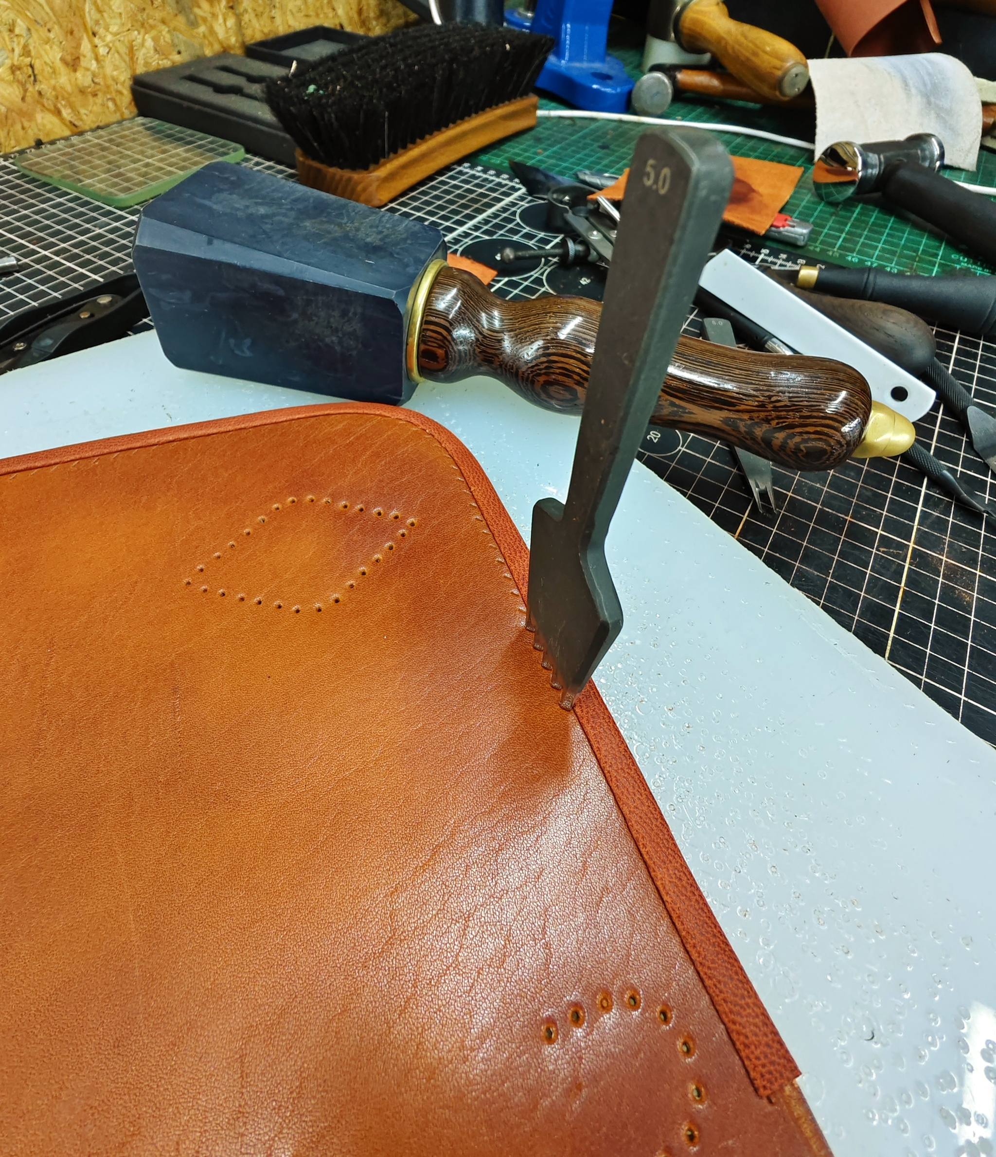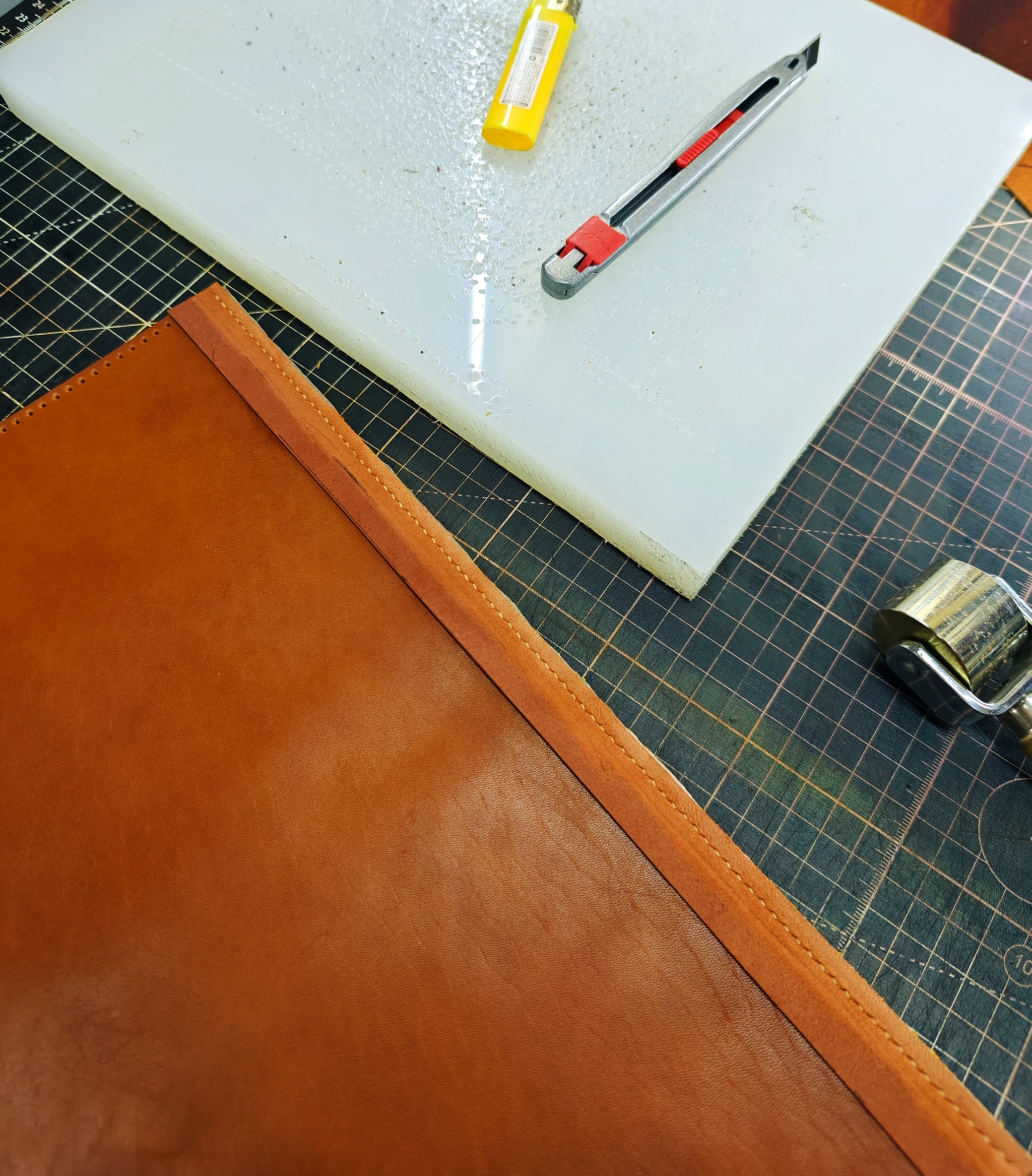 Далее, начинается чистое творчество. Кожа у меня краст (кожа без Завадского финишного покрытия), в толщине около 2,6 - 2,8 мм.