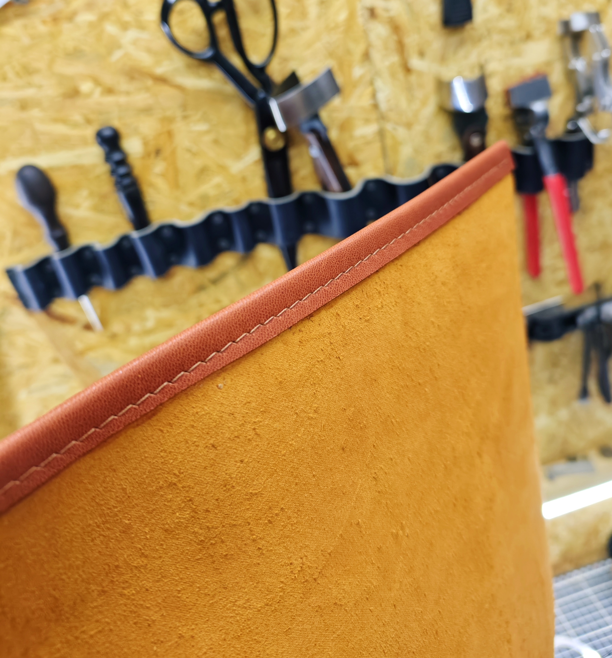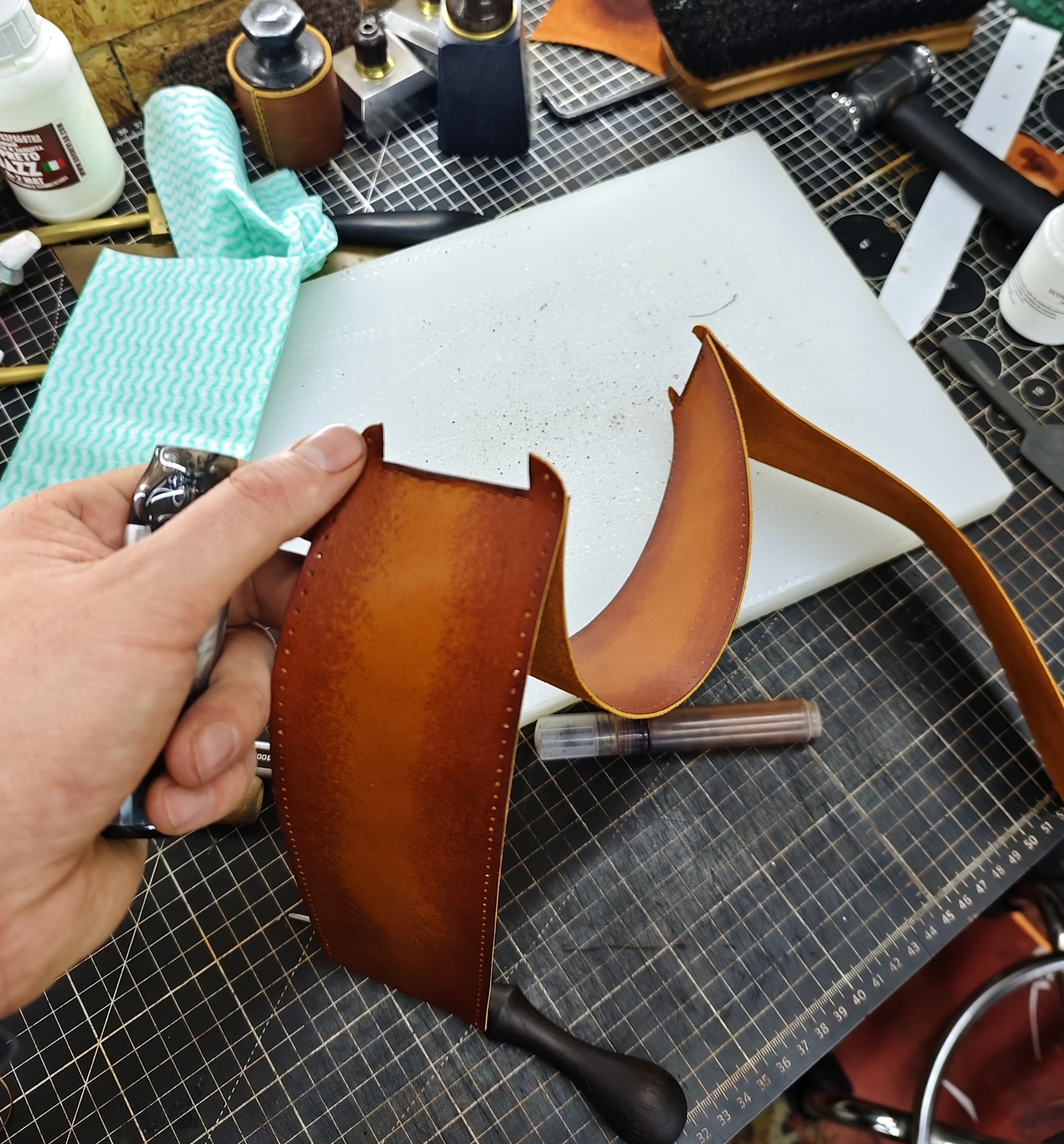 Следующий этап, который я ранее не показывал кажется - это окантовка основных деталей тонкой кожей.