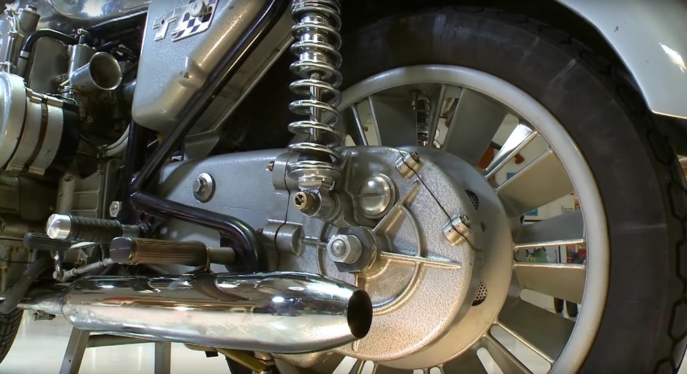 В 1968 году Фридель установил 1177-кубовый автомобильный мотор NSU TTS мощностью 88 л.с., который, согласно историческим отчетам, часто ломал спицевые колеса. Фриделю пришлось разработать собственное заднее колесо из магниевого сплава, хотя спереди немец решил оставить спицевое колесо. Видимо, чтобы сэкономить.
