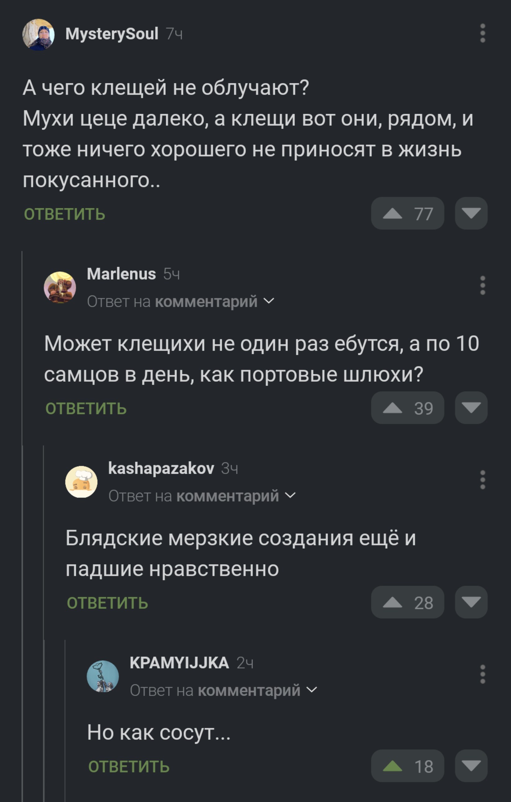 1916 MyVesaria Клещ 1 месяц назад #comment_368981270 Клещ Юмор Комментарии на Пикабу Мат Скриншот 215 7 2 2 1 Ещё 0