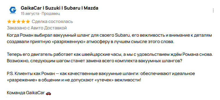 Поставили мне тут отзыв на авито. Мягко говоря, очень положительный.