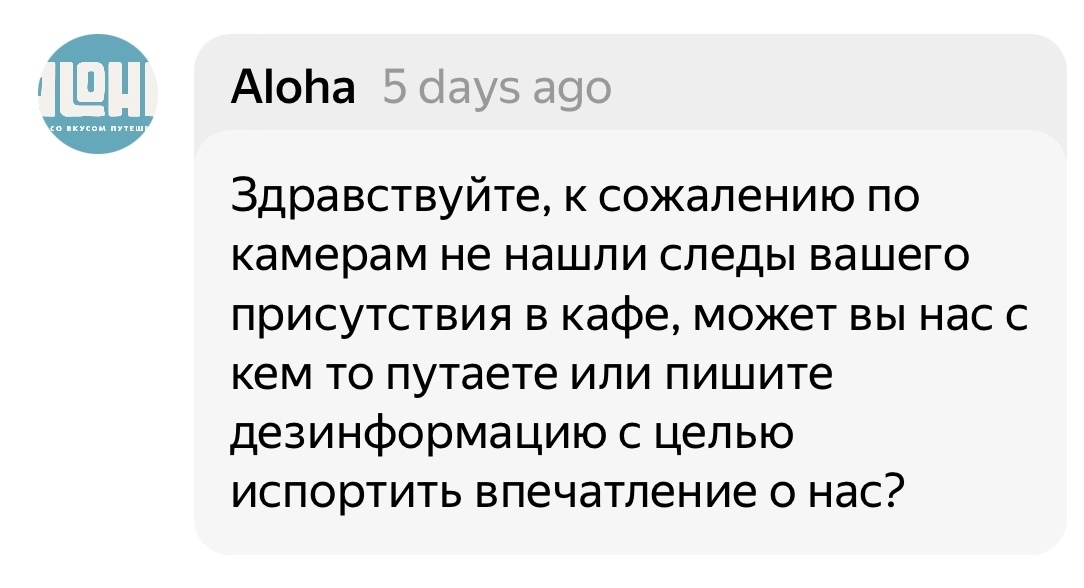 И все бы ничего, shit happens, но сегодня я увидела, что несколько дней назад руководство кафе оставило мне комментарий на мой отзыв. И комментарий то не простой, а прям-таки золотой.